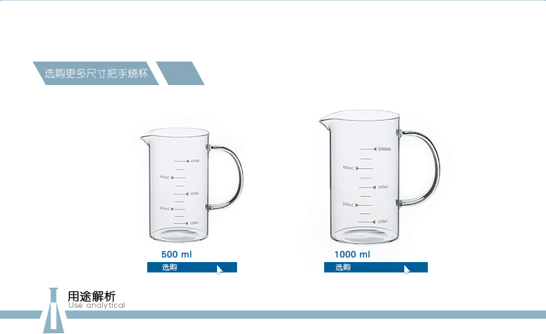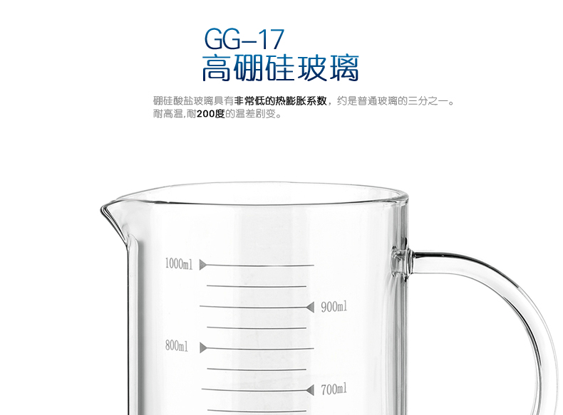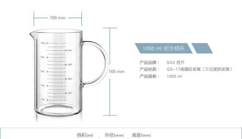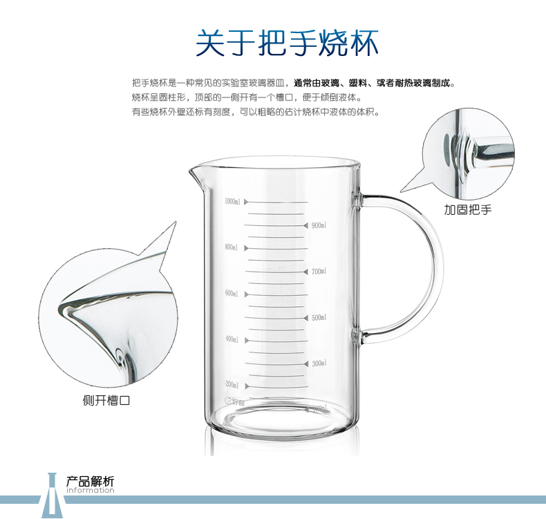 商品名称:思齐 玻璃烧杯把手烧杯 高硼硅 耐高温烧杯 1000ml