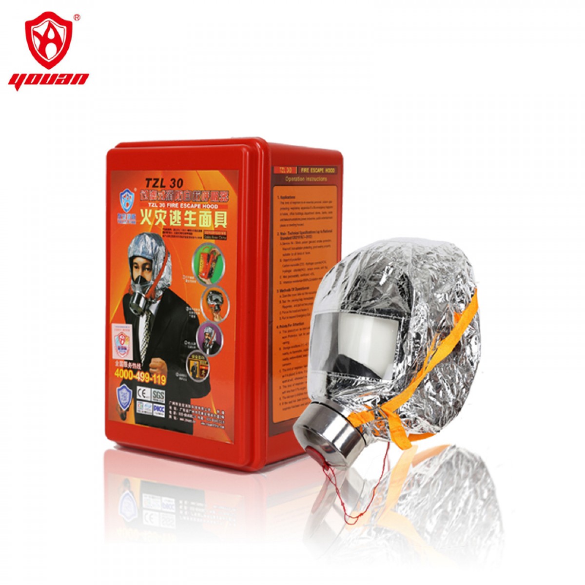 商品名称:友安 消防火灾逃生面具面罩防毒防烟过滤式自救呼吸器 TZL30