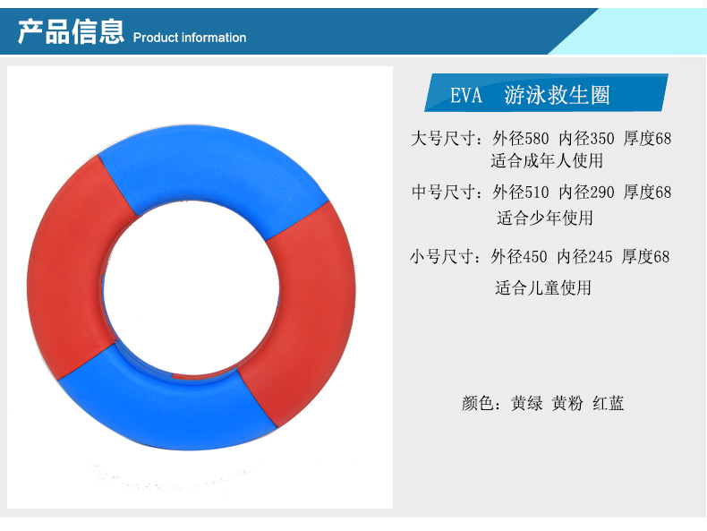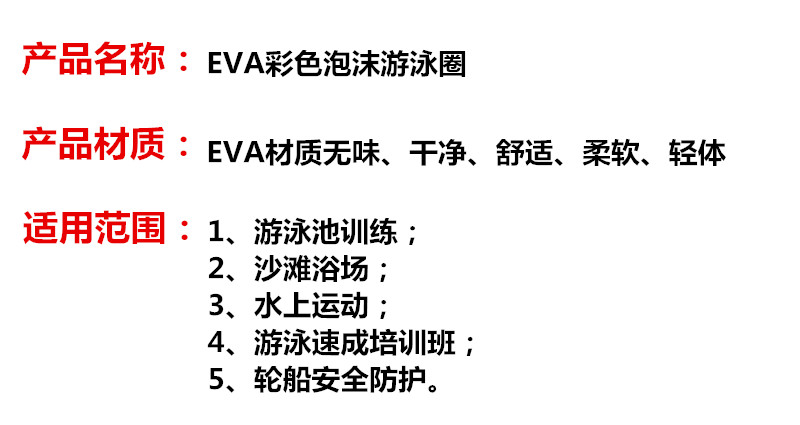 商品名称:国产 成人儿童多色救生圈EVA游泳圈彩色实心泡沫救生圈免充气
