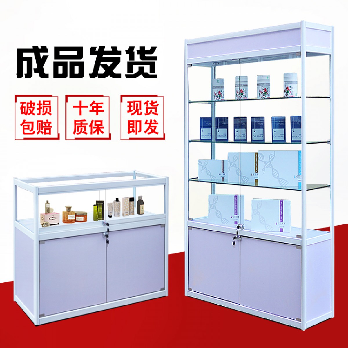 商品名称:国产 展示柜玻璃产品货架珠宝陈列柜化妆饰品柜手机柜台玻璃展示柜订做