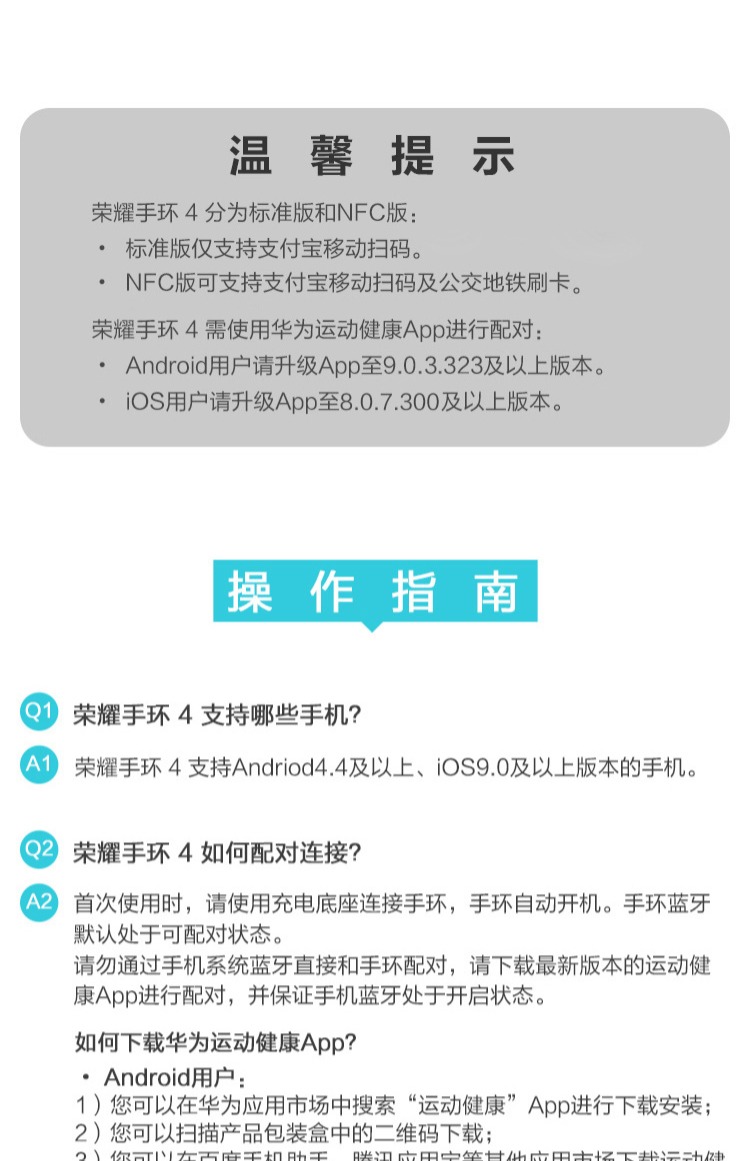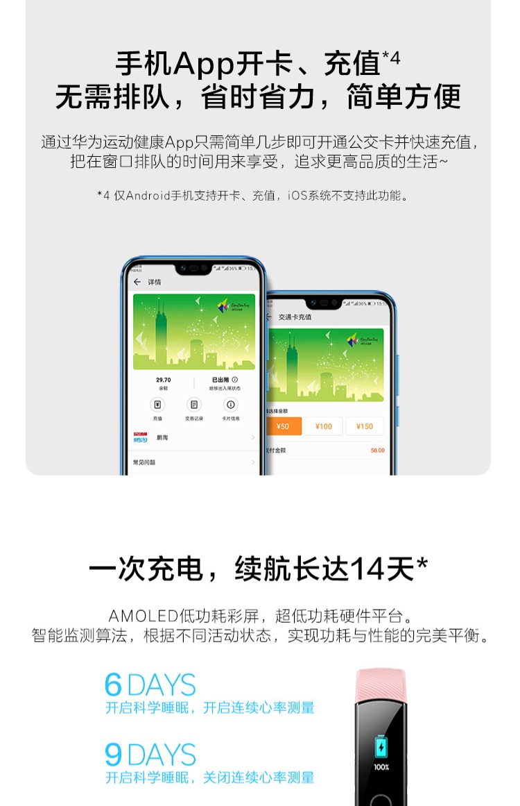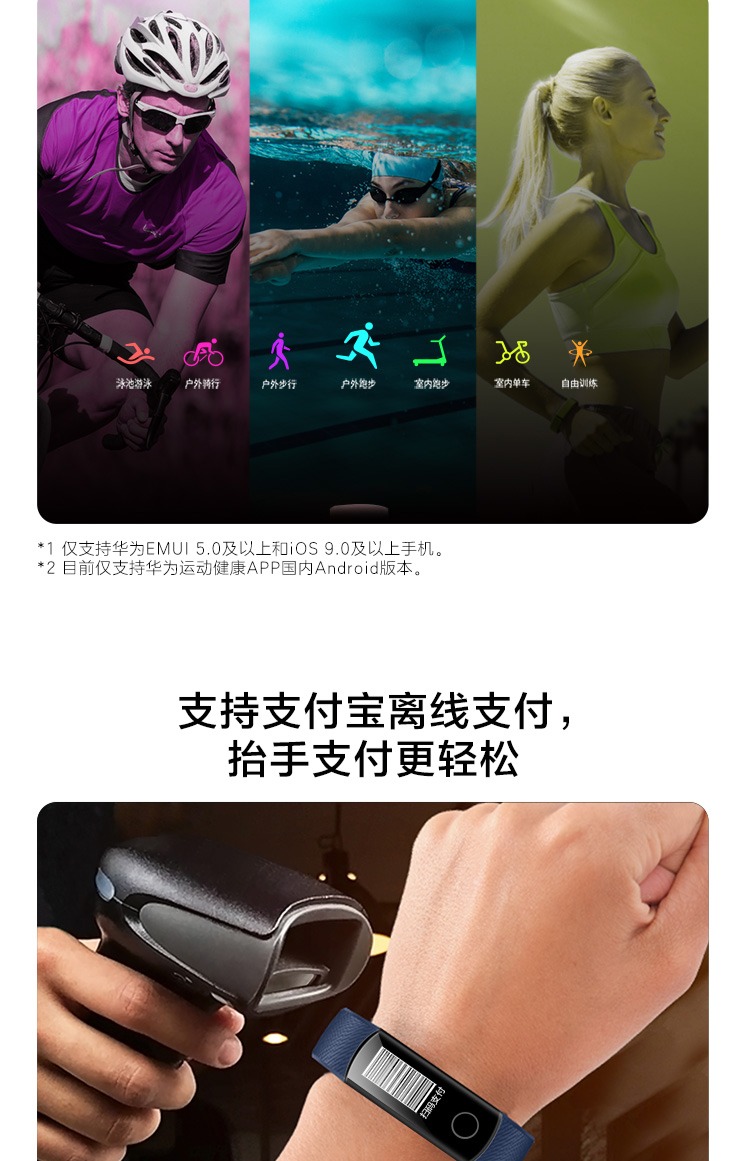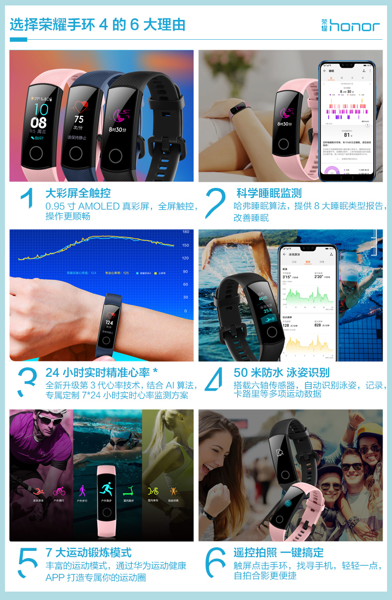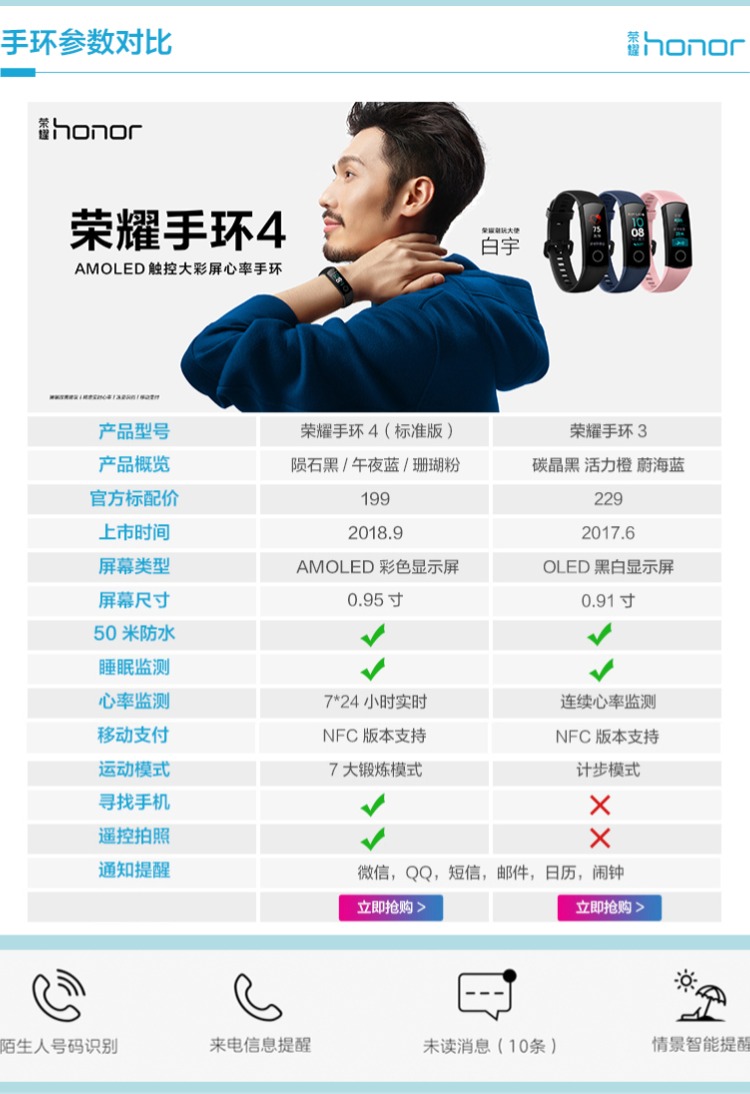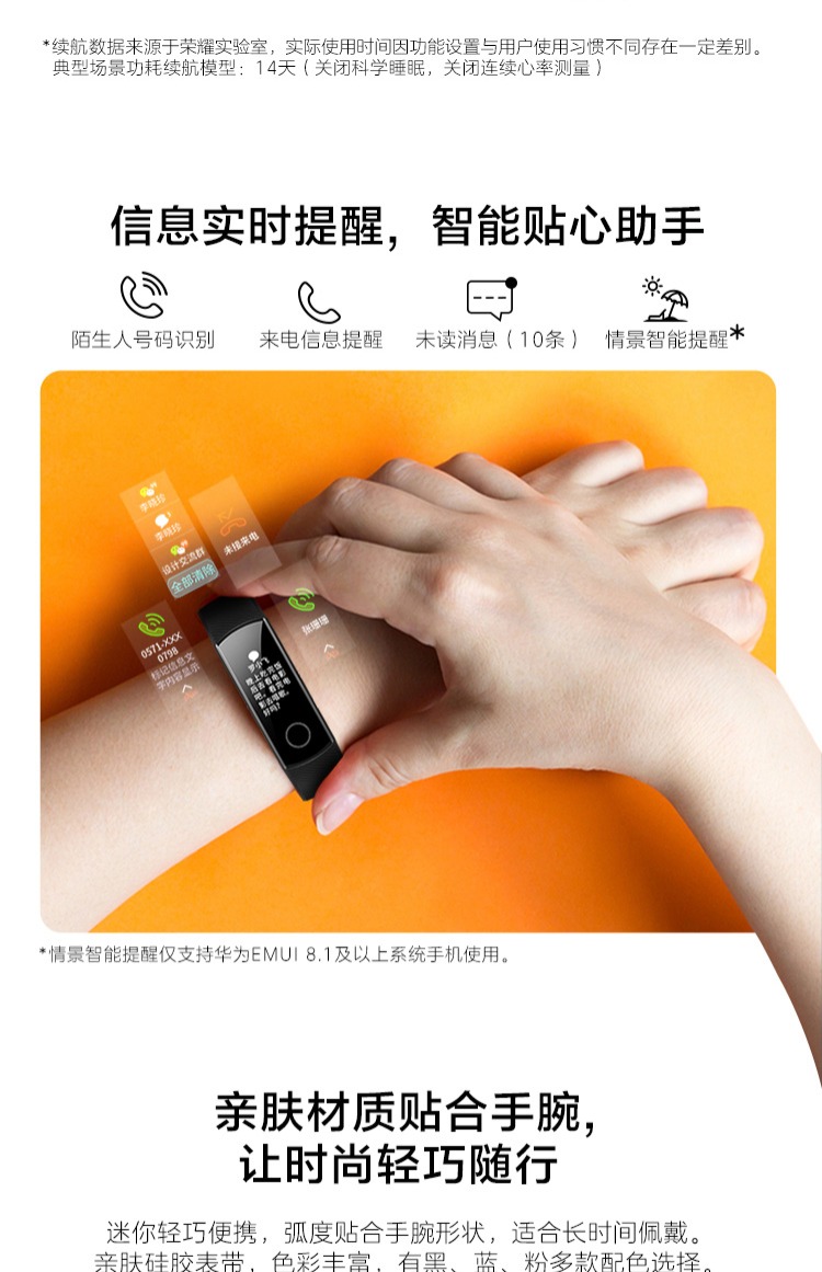 商品名称:荣耀 运动智能计步心率彩屏触控计步器3nfc手表 手环4