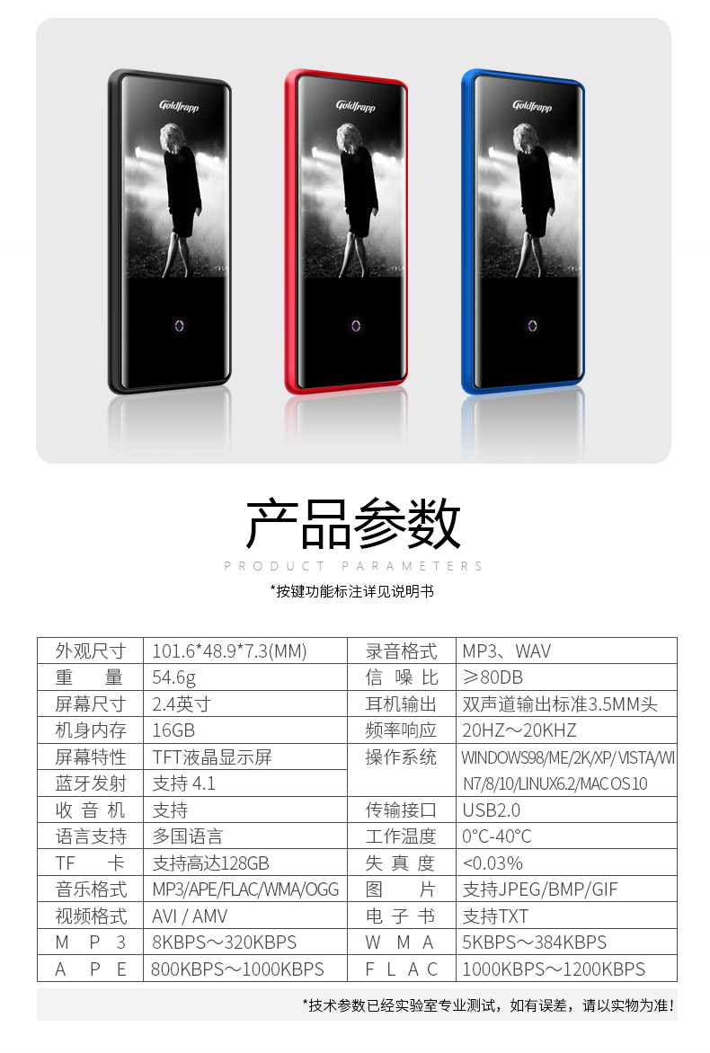 商品名称:国产 蓝牙mp4触摸屏超薄mp5无损音乐随身听外放插卡学英语听力