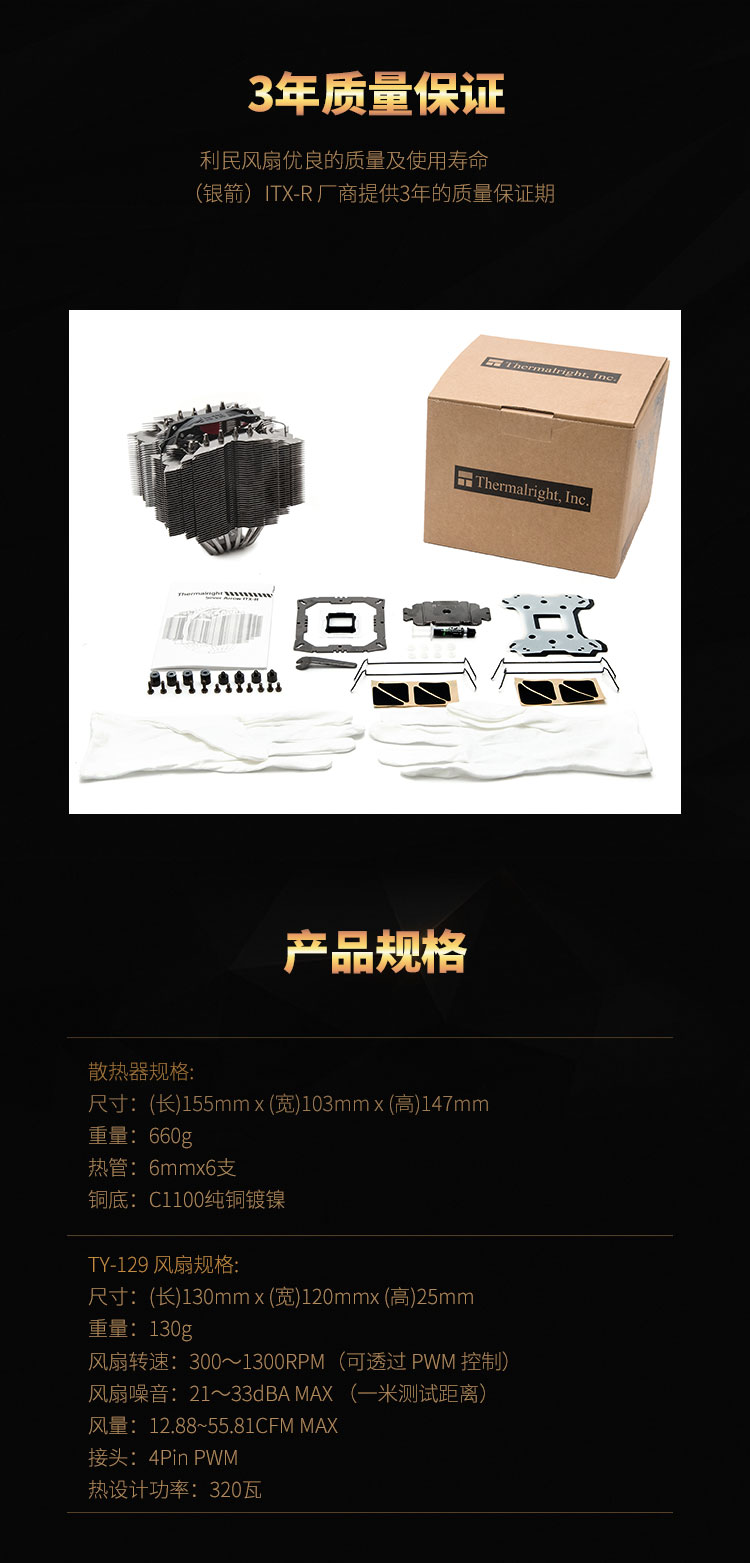 商品名称:利民 银箭 全平台 CPU塔式散热器 AM4Silver Arrow ITX-R