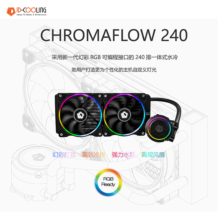 ID-COOLING Chromaflow240 全平台金属扣具 cpu一体式水冷散热器