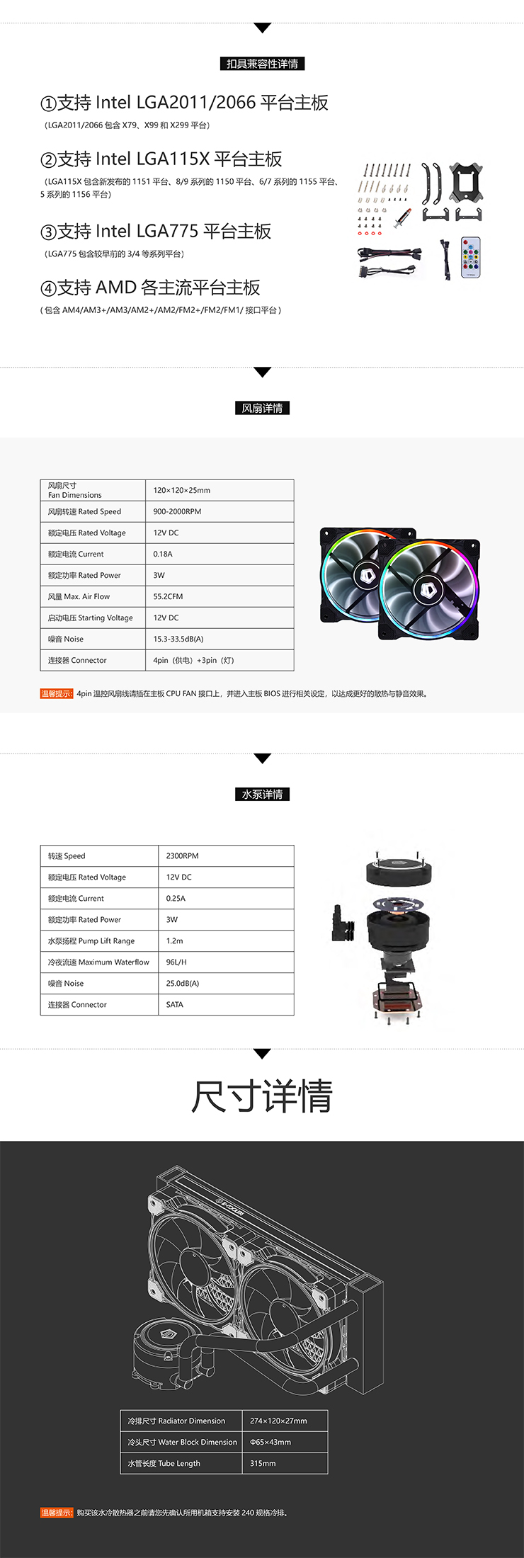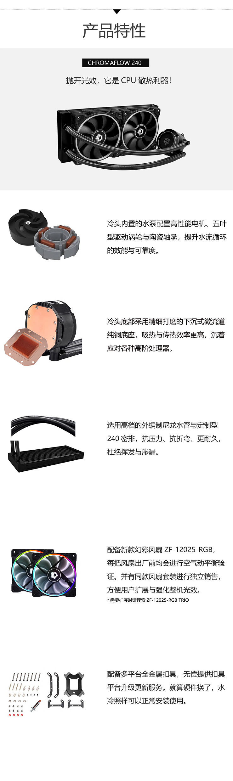 商品名称:ID-COOLING Chromaflow240 全平台金属扣具 cpu一体式水冷散热器