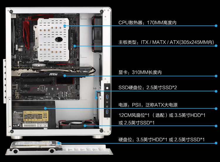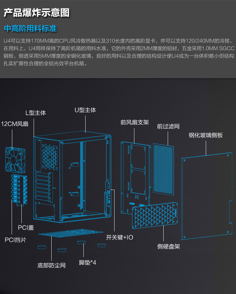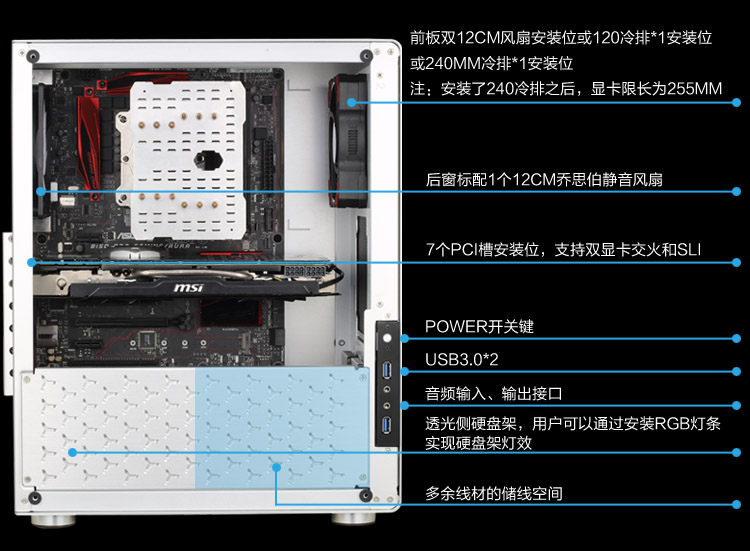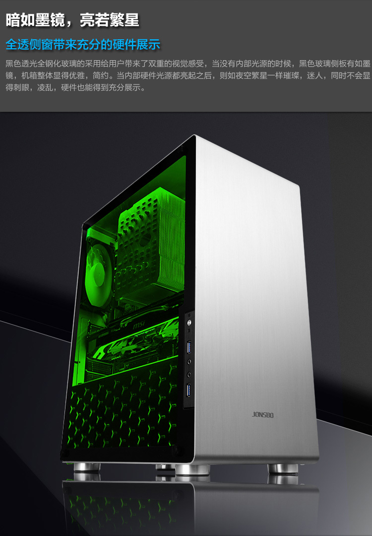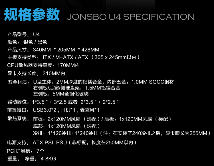 商品名称:乔思伯 全铝机箱USB3.0 侧透机箱 支持ATX主板 U4