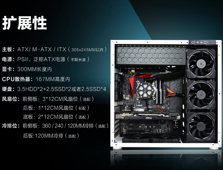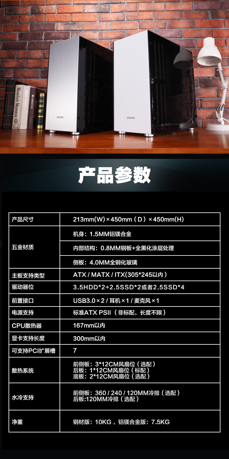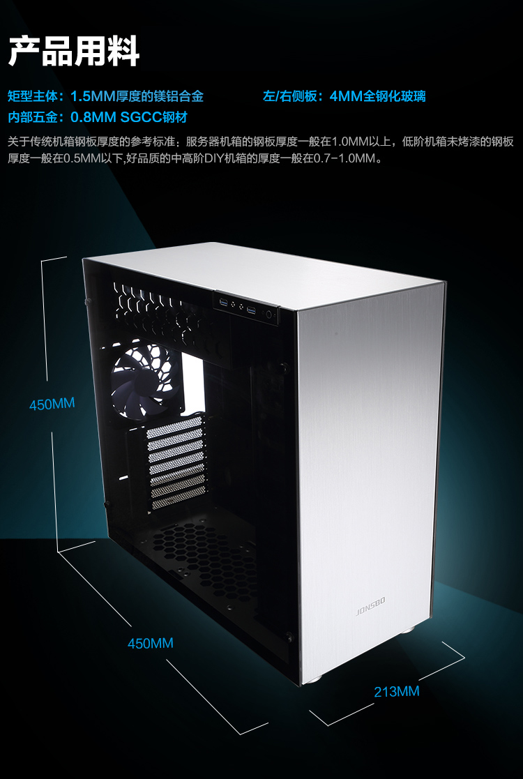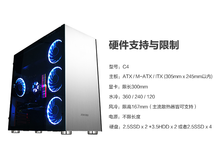 商品名称:乔思伯 C4 中塔式机箱 ATX主板 1.5MM厚钢板箱体双侧玻璃