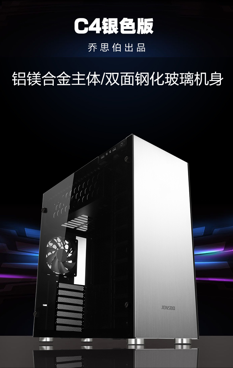 乔思伯 C4 中塔式机箱 ATX主板 1.5MM厚钢板箱体双侧玻璃