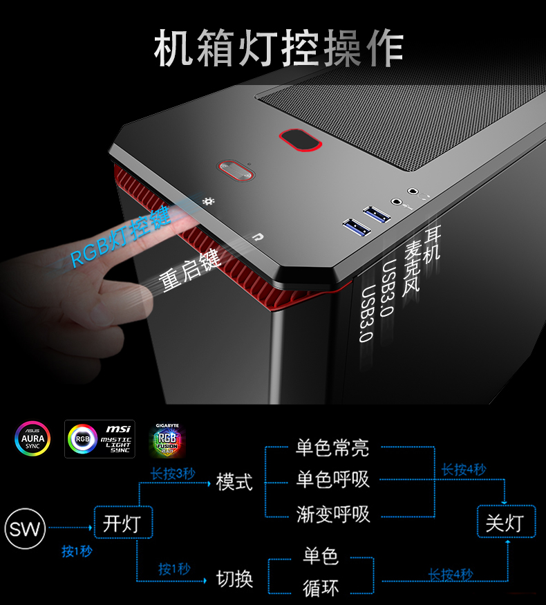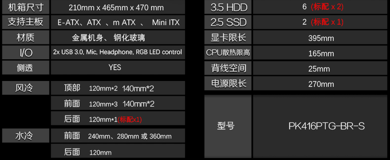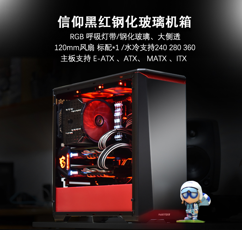 商品名称:追风者 416PTG钢化玻璃水冷电脑机箱 台式机 RGB灯主机箱 PH-EC416PTG