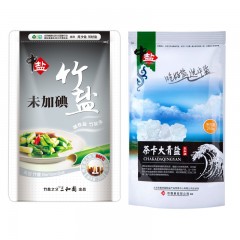 中盐 三和园无碘竹盐×8袋+中盐未加碘茶卡大青盐×8袋
