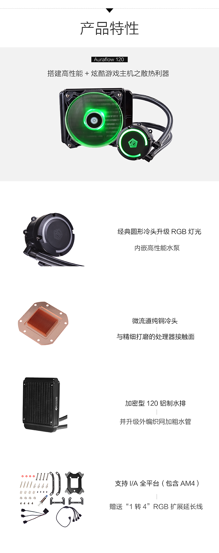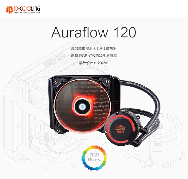 商品名称:ID-COOLING RGB光效一体式水冷CPU散热器 120排 AURAFLOW 120