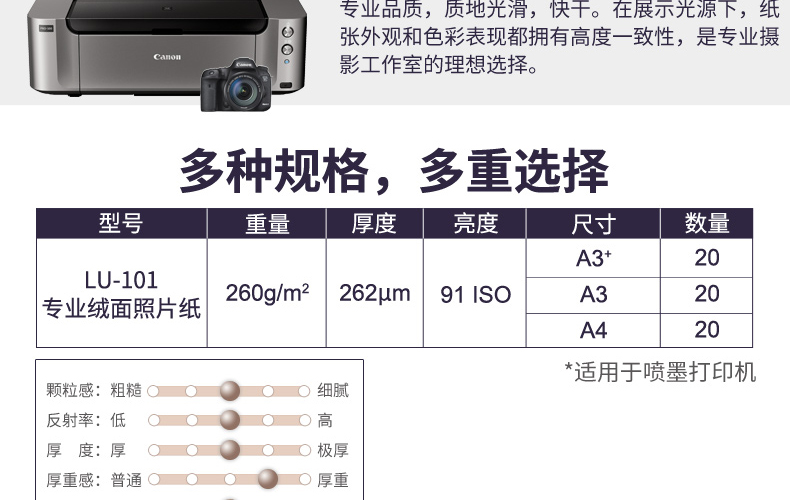 商品名称:佳能 原装LU101绒面照片纸打印机相纸