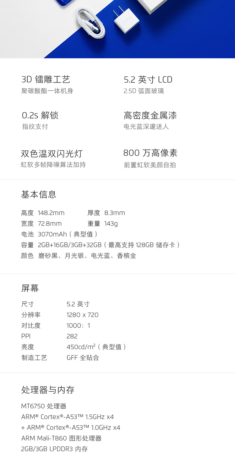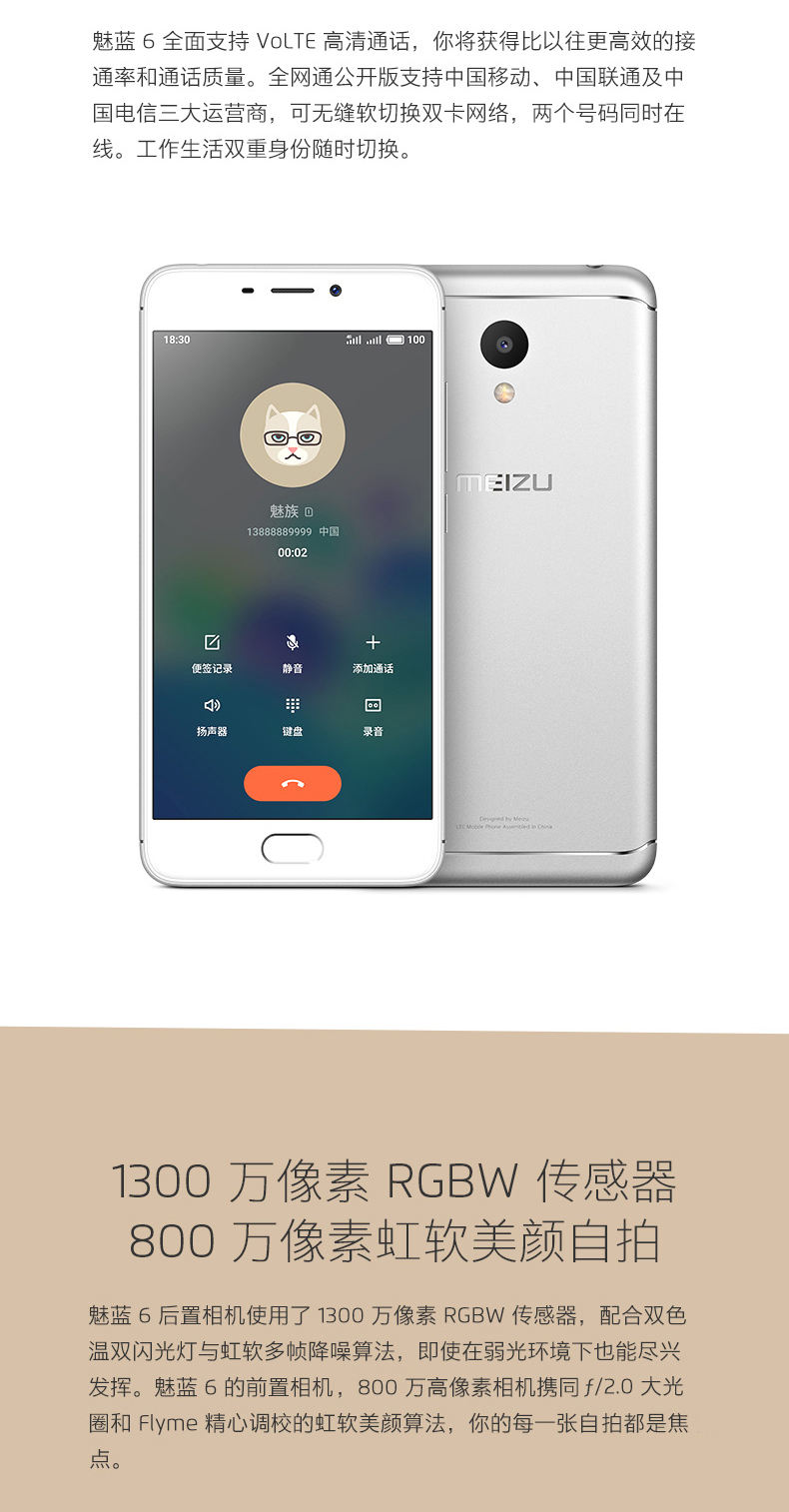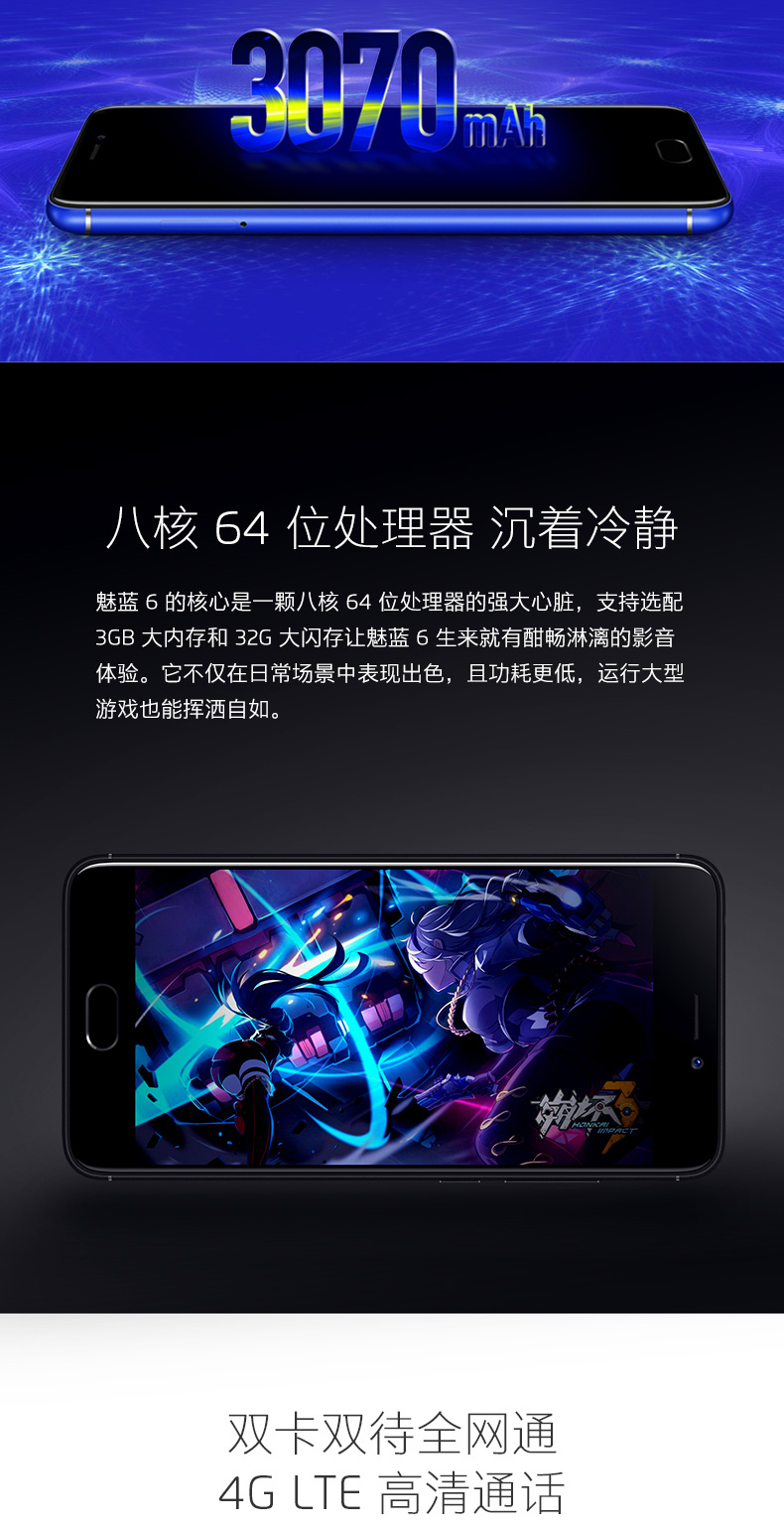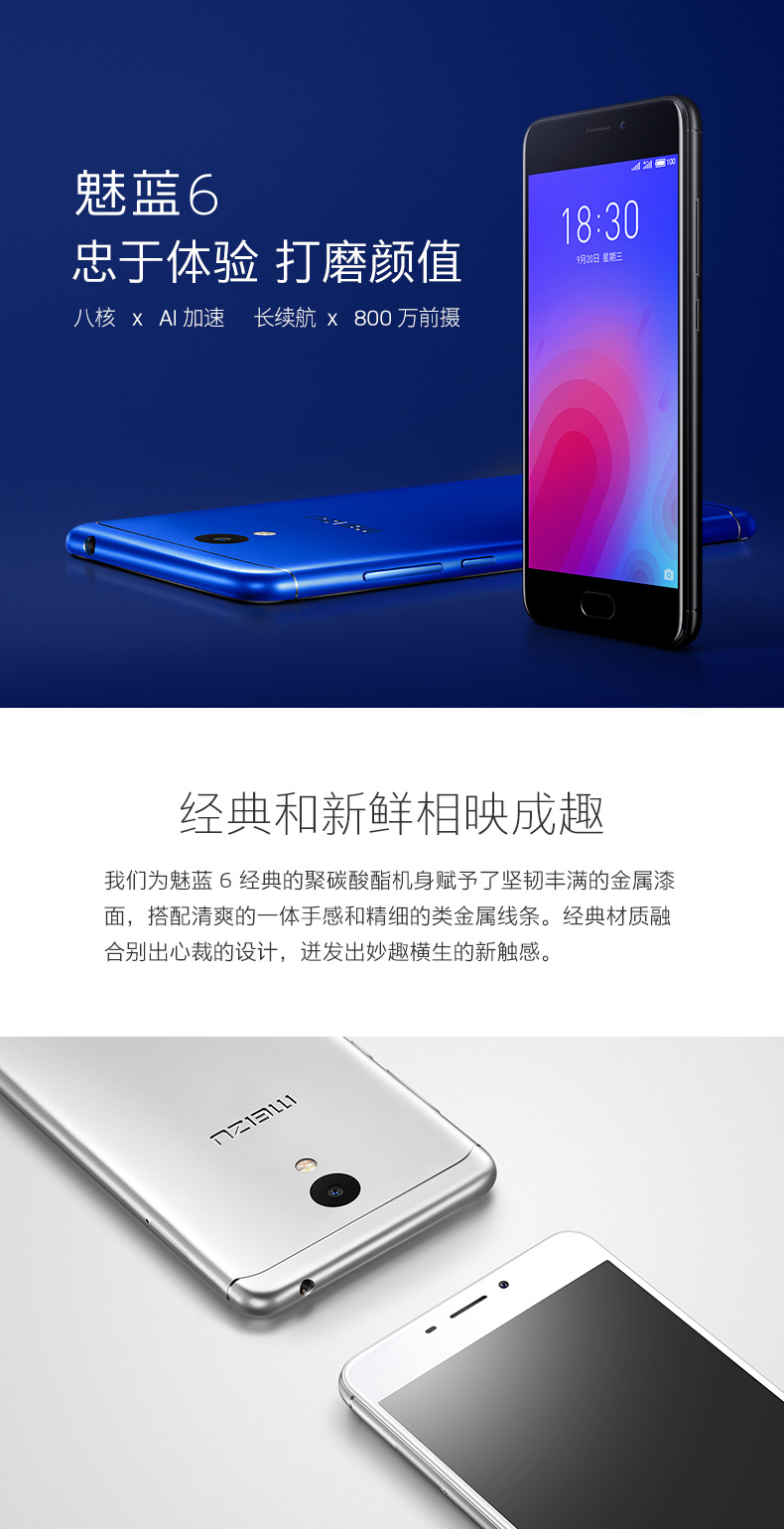 商品名称:Meizu/魅族 魅蓝6 八核AI全网通双卡双待拍照美颜手机