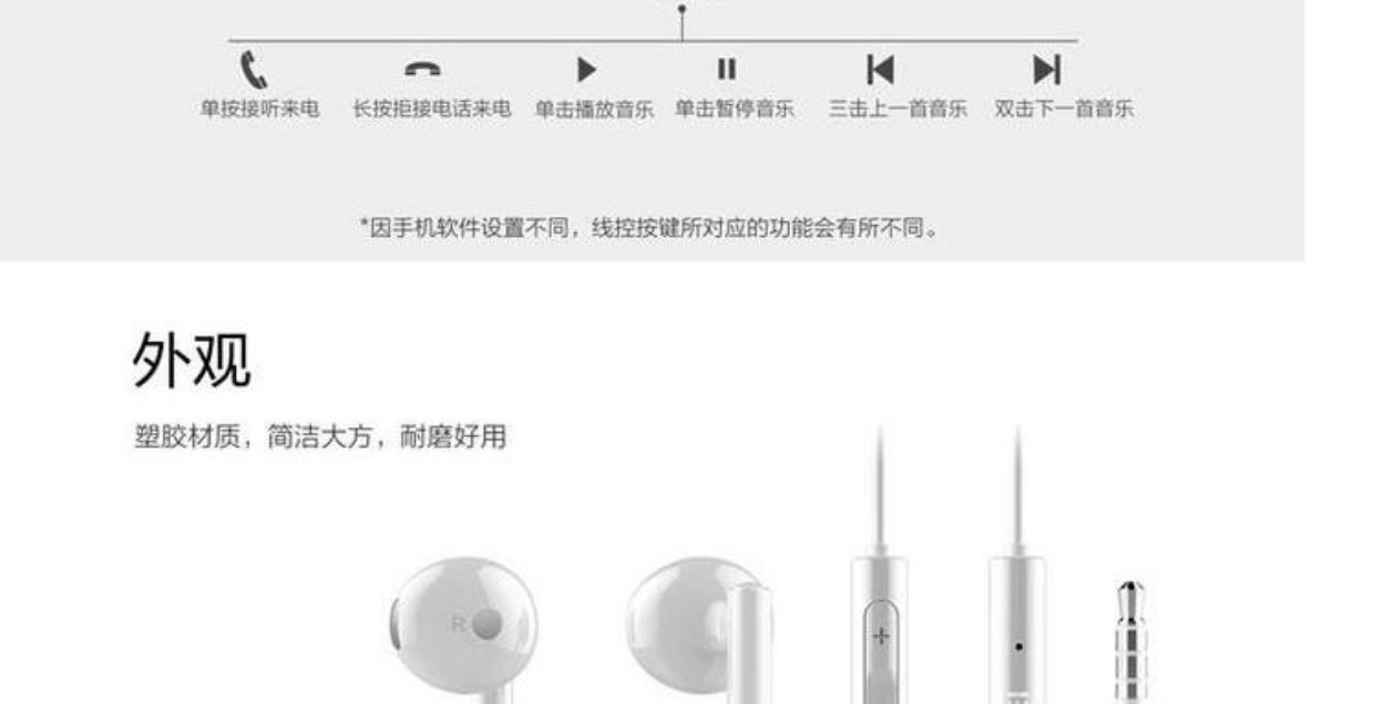 商品名称:华为/Huawei 原装耳机线控耳机半入耳式通用型音乐耳机 AM115