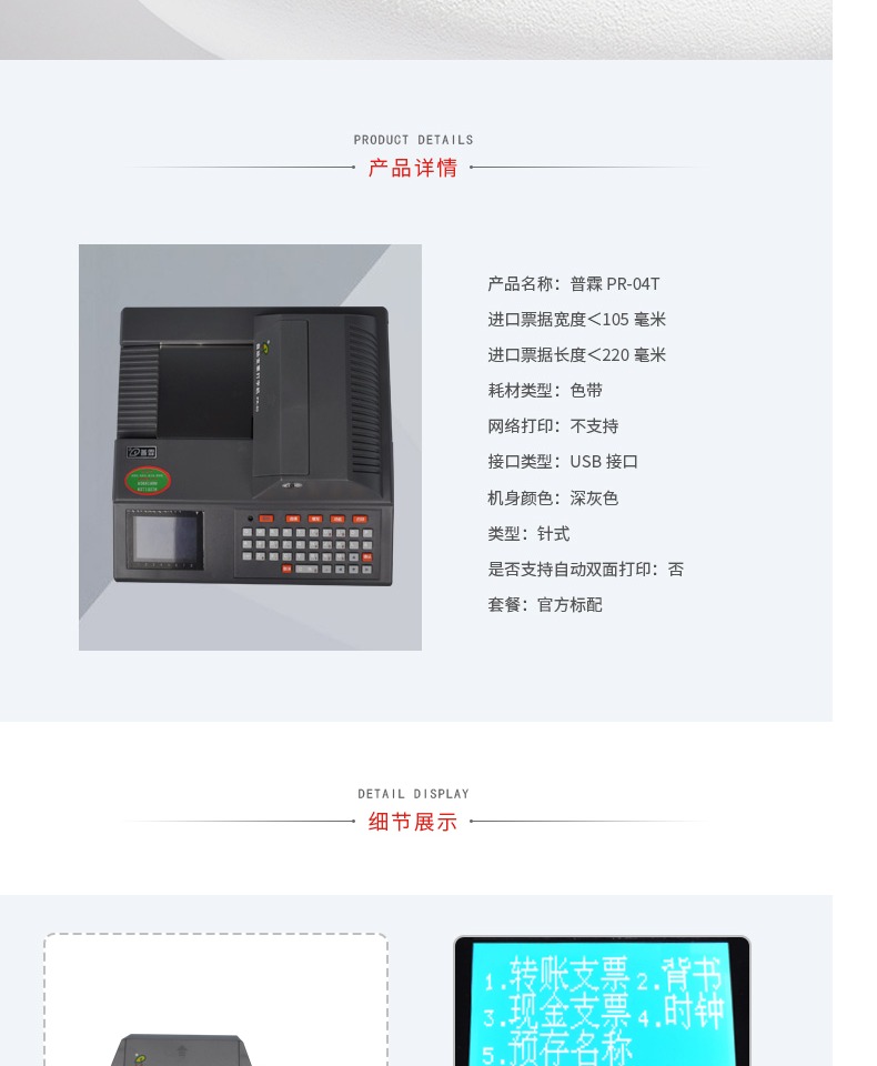 商品名称:普霖 PR-04T支票打印机 银行进账单票据打印机 可联电脑使用