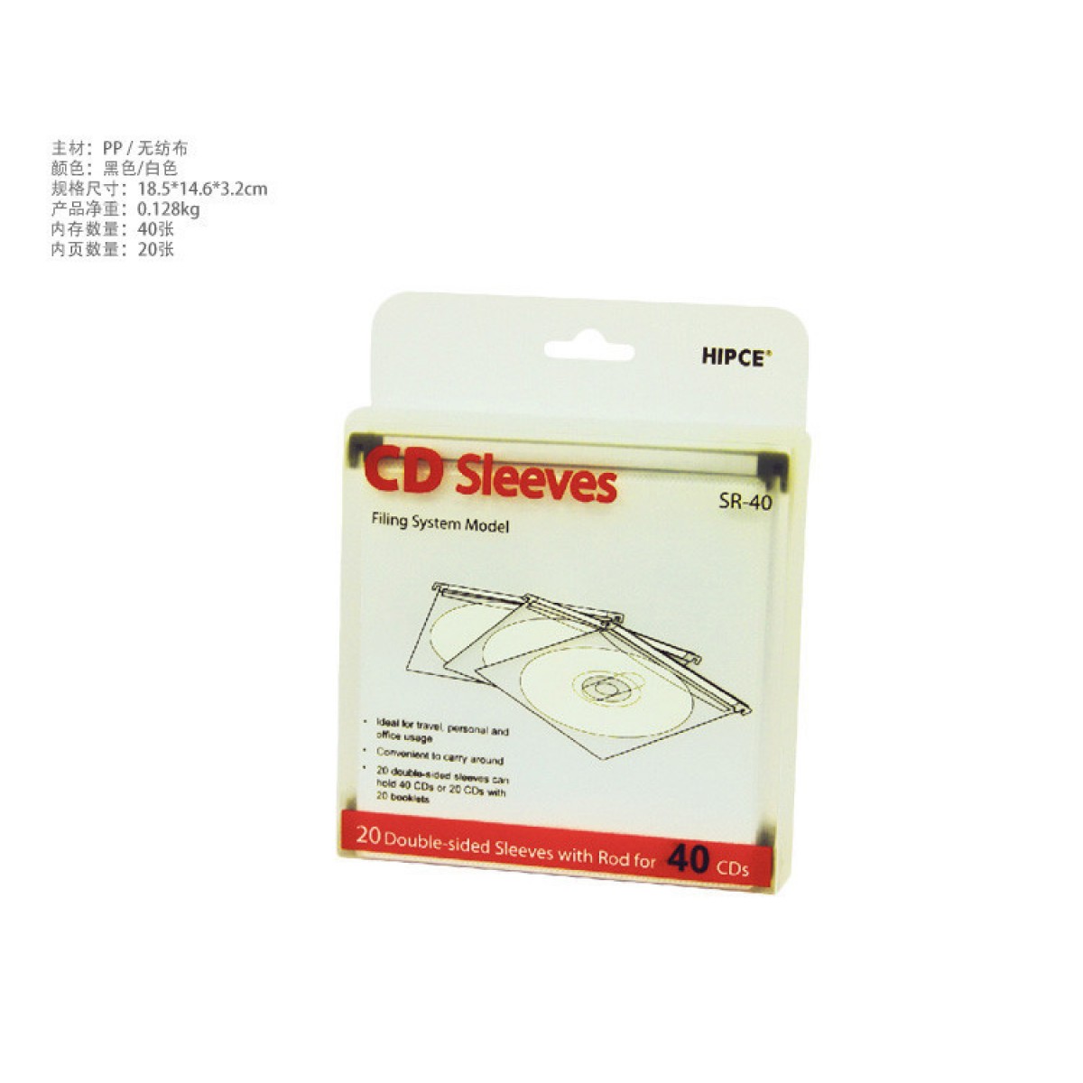 商品名称:HIPCE 时尚CD盒标配内页袋带挂钩内页 20张碟片保护页光盘双面袋子