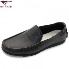 七匹狼 男鞋新款头层牛皮休闲套脚男士真皮软底皮鞋驾车鞋豆豆鞋子