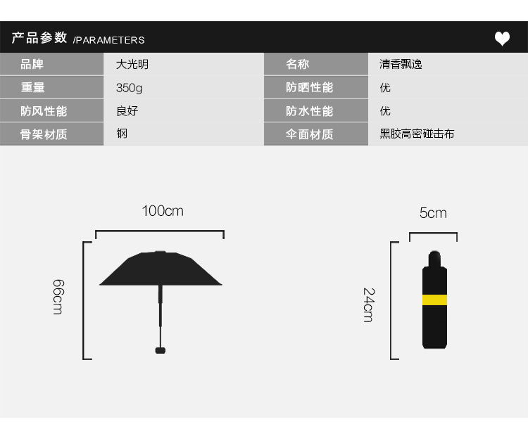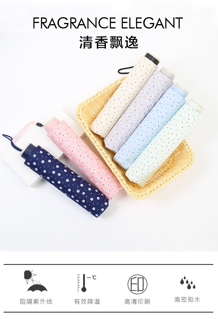 商品名称:国产 防晒黑胶太阳伞遮阳伞学生遮阳晴雨伞三折叠伞