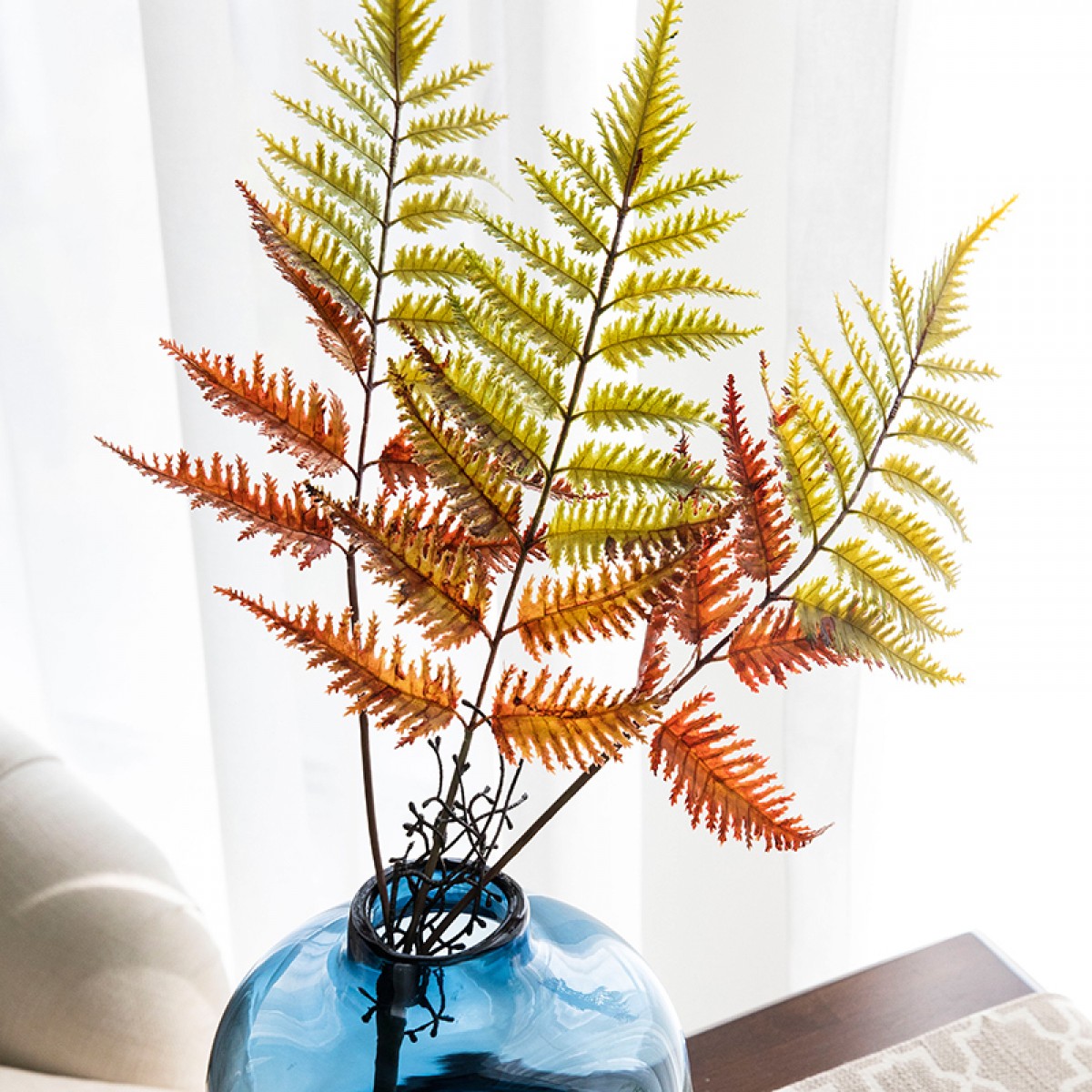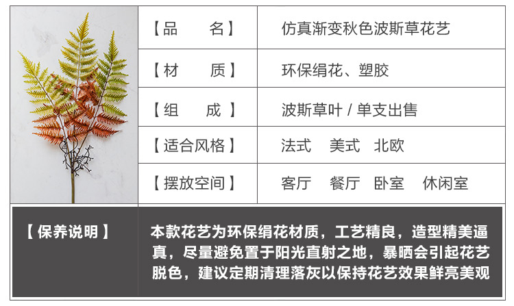 商品名称:国产 赫本家软装锯叶束秋色美式北欧假花仿真叶子蕨类绿植装饰软装家居