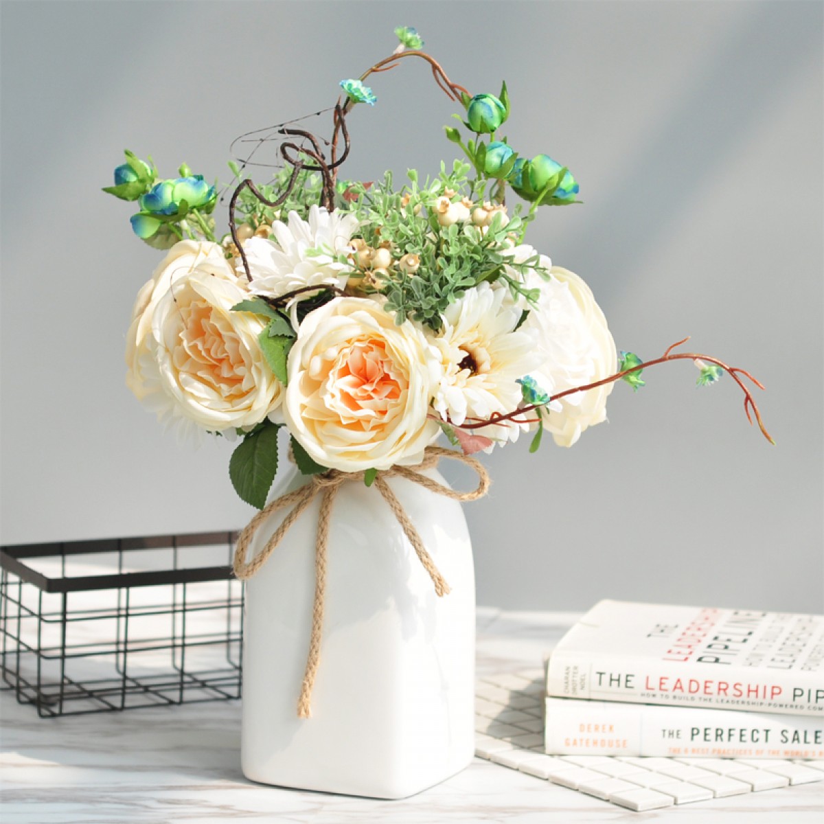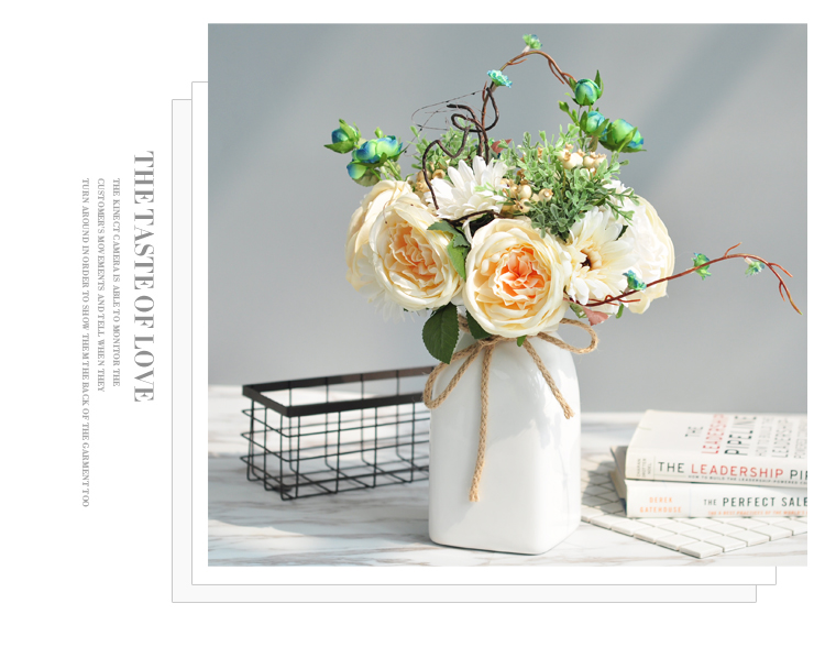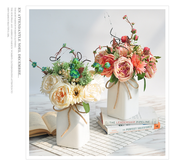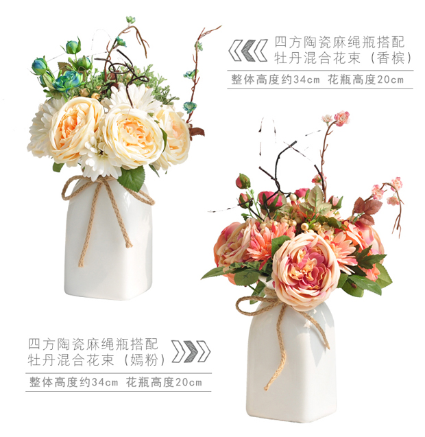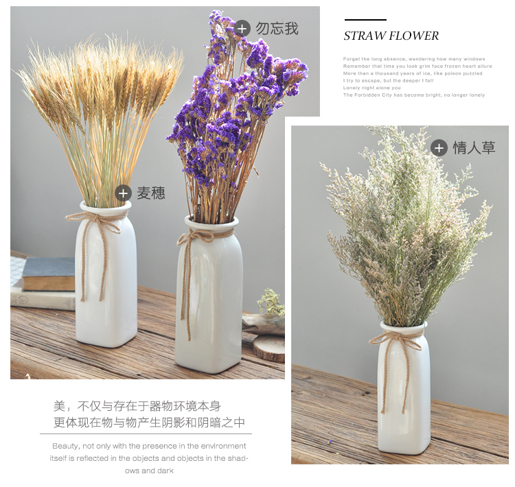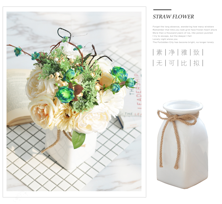 商品名称:国产 家居装饰品北欧干花仿真花瓶插花艺白色陶瓷套装客厅简约摆件