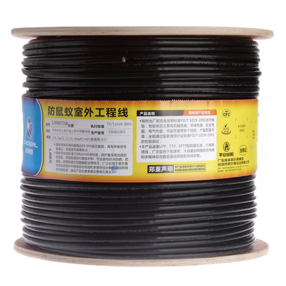 商品名称:Choseal/秋叶原 LDN0677 超五类防水网线 低烟无卤 抗鼠蚁 非屏蔽