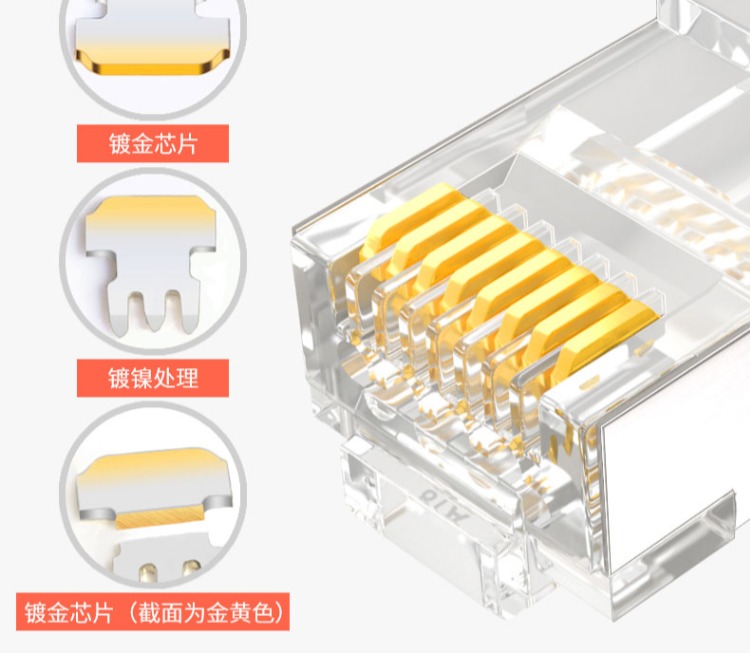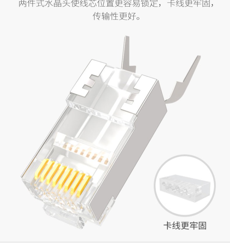 商品名称:SAMZHE/山泽 七类水晶头万兆屏蔽水晶头cat7类RJ45网线接头铜壳镀金工程