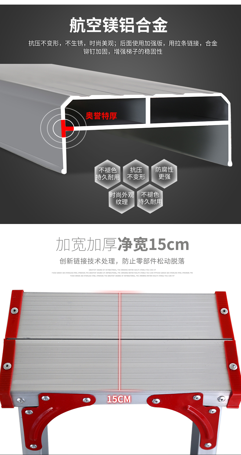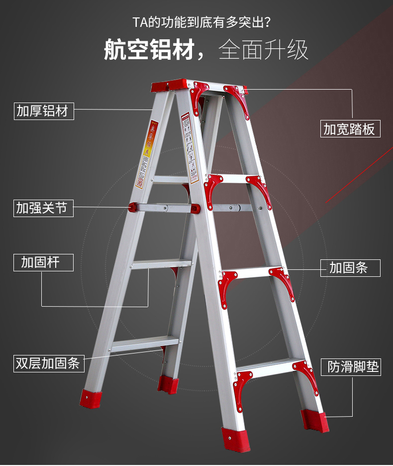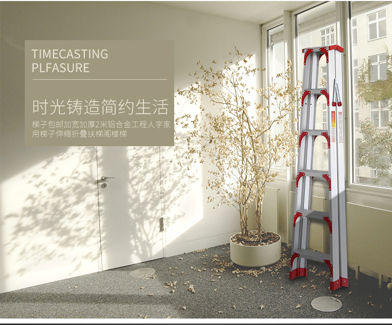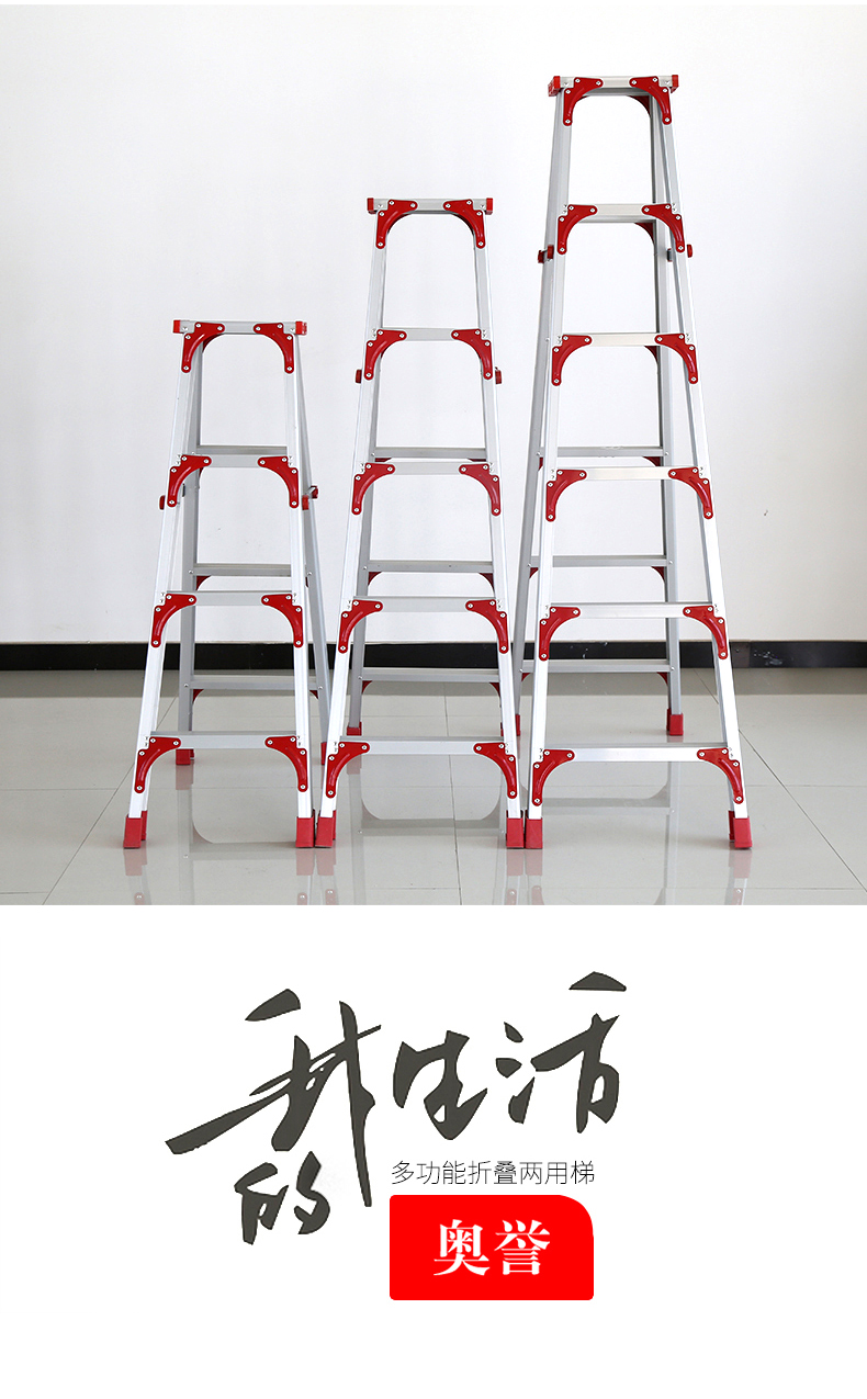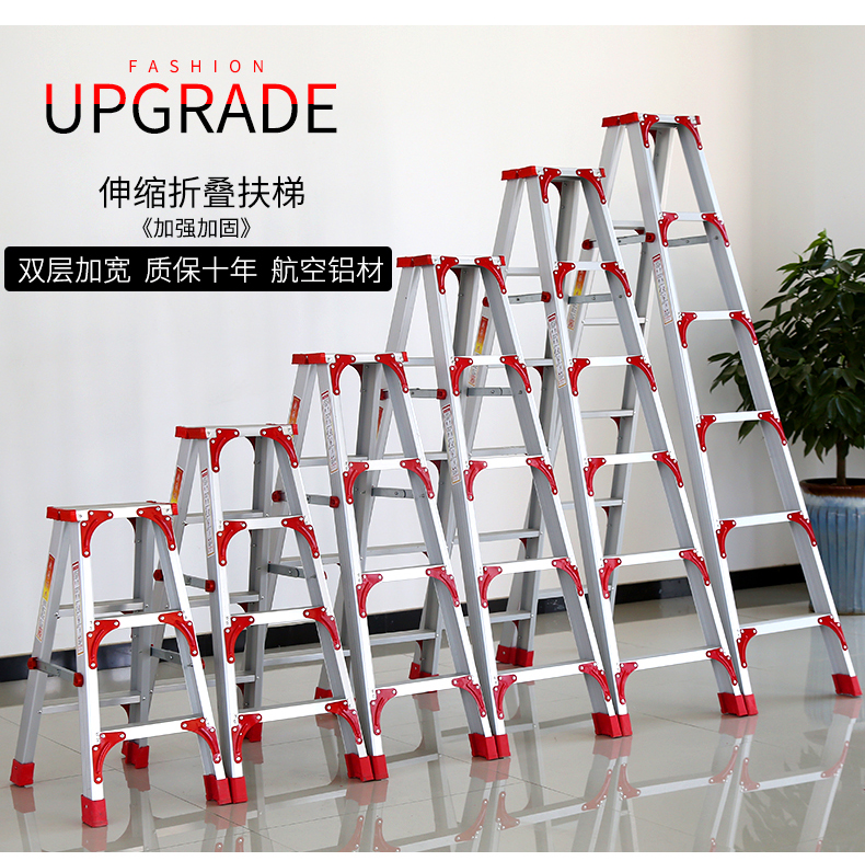 商品名称:国产 梯子加宽加厚2米铝合金双侧工程人字家用伸缩折叠扶梯阁楼梯 LJ-026