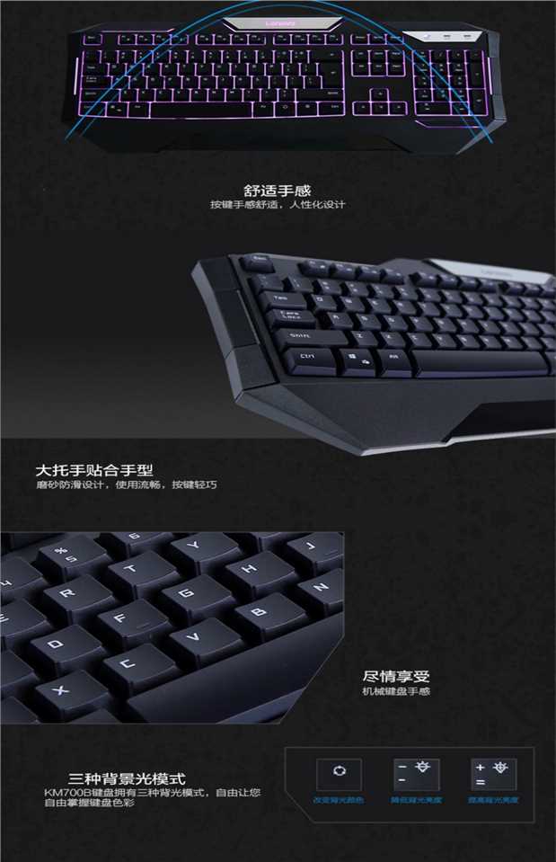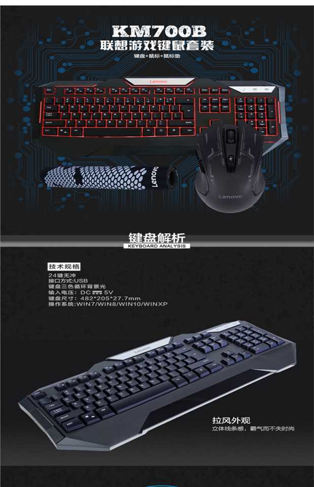 商品名称:联想 原装游戏键鼠套装KM700B笔记本台式发光鼠标背光键盘大鼠标垫