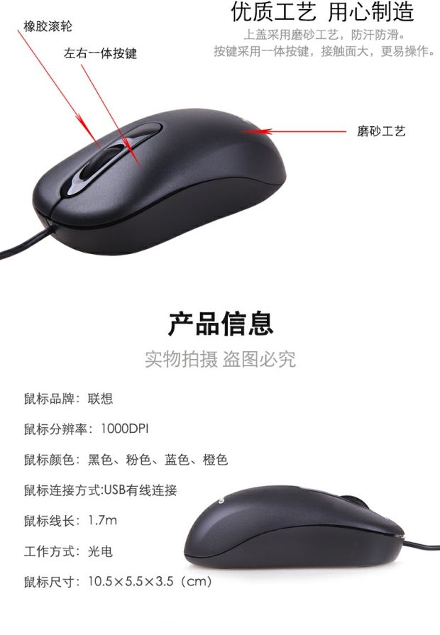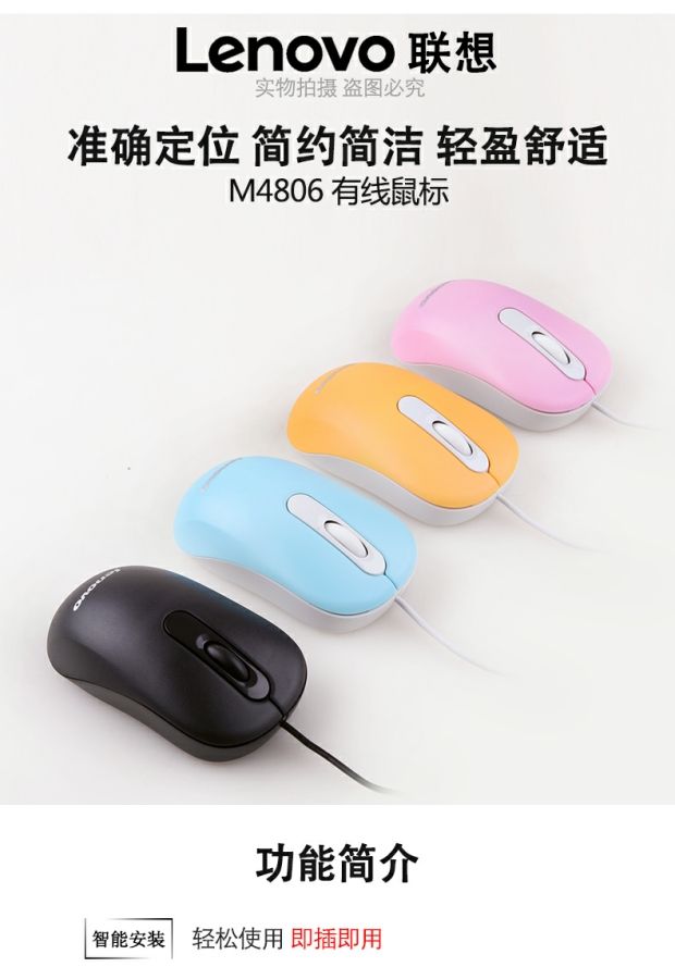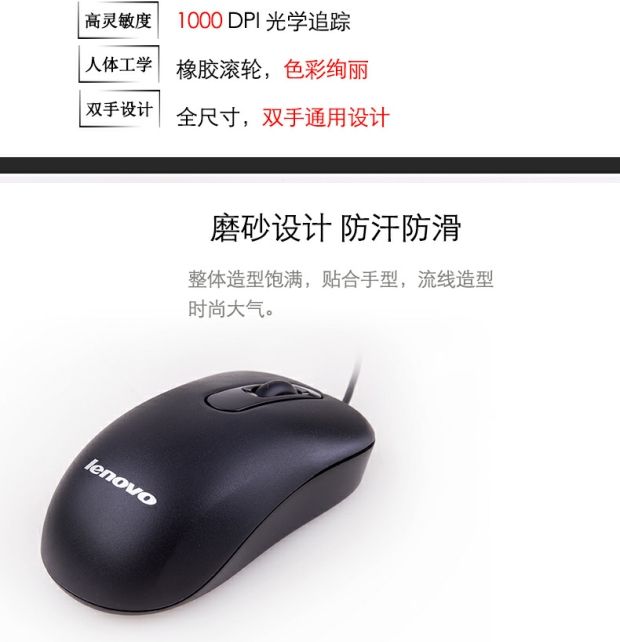 商品名称:联想 有线鼠标 台式笔记本电脑办公电竞游戏通用大鼠标 M4806