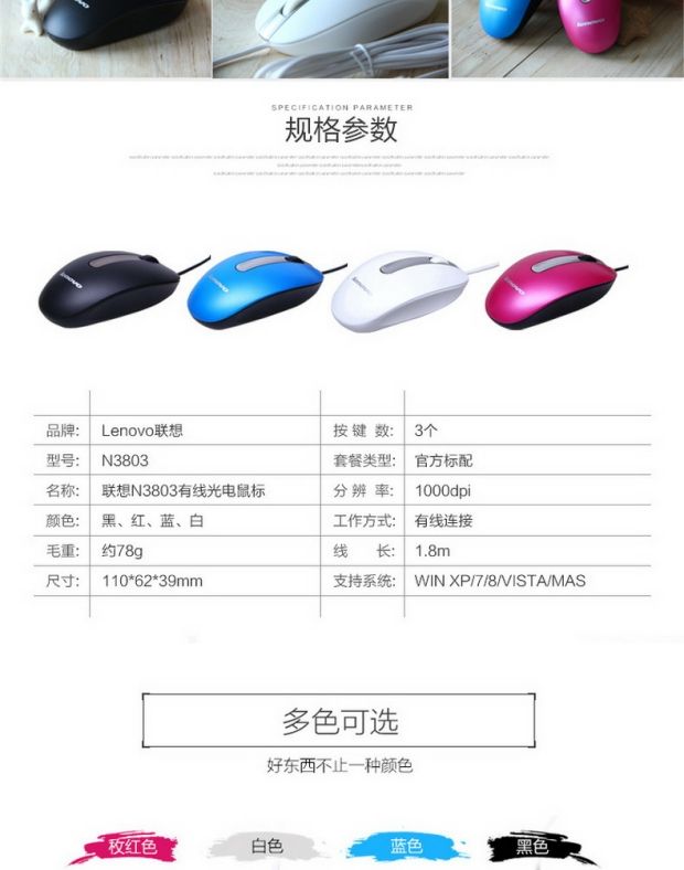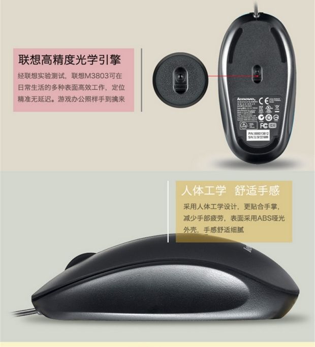 商品名称:联想 鼠标游戏鼠标 台式机笔记本办公家用USB鼠标有线 M3803