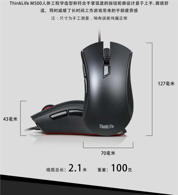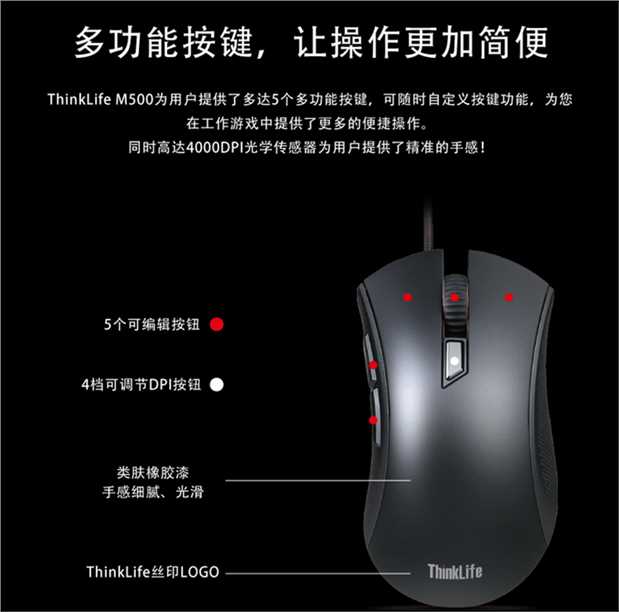 商品名称:联想 有线光学游戏鼠标 台式LOL可编程黑将定制竞技鼠标 ThinkM500