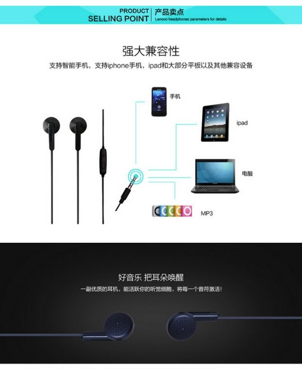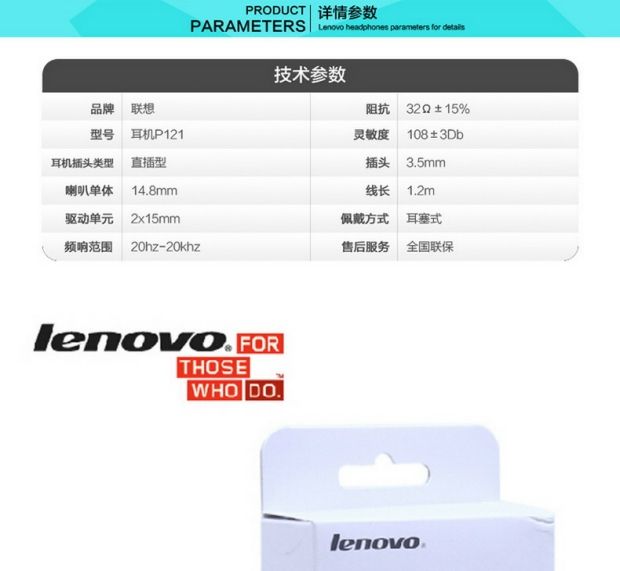 商品名称:联想/lenovo 入耳塞式安卓苹果电脑通用带麦可通话音乐耳机 P121