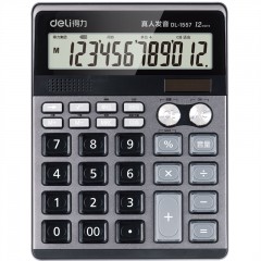 得力 1557双电源语音计算器太阳能语音计算机办公家用财务计算器