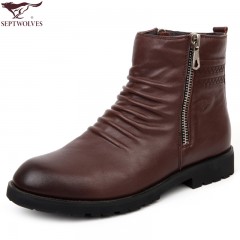 七匹狼 棉鞋防褶邹头层牛皮高帮鞋拉链男士皮靴真皮毛皮鞋短靴