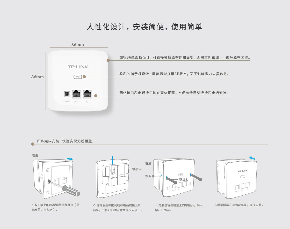 商品名称:TP-LINK TL-AP300I-DC薄款 300兆酒店宾馆面板AP入墙式面板ap