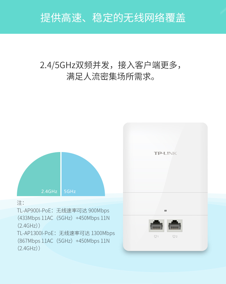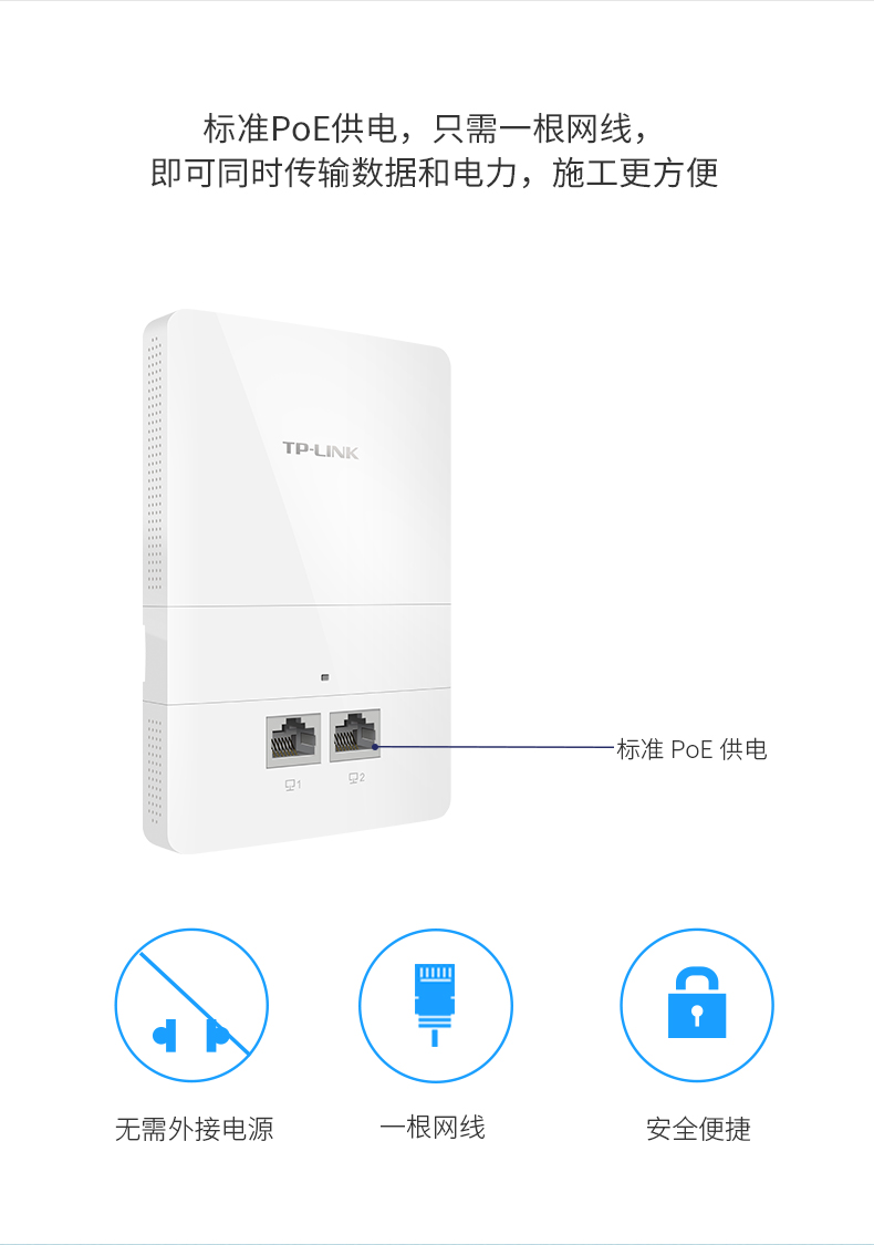 商品名称:TP-LINK TL-AP900I-PoE 86型无线双频5G wifi覆盖面板式AP标准POE