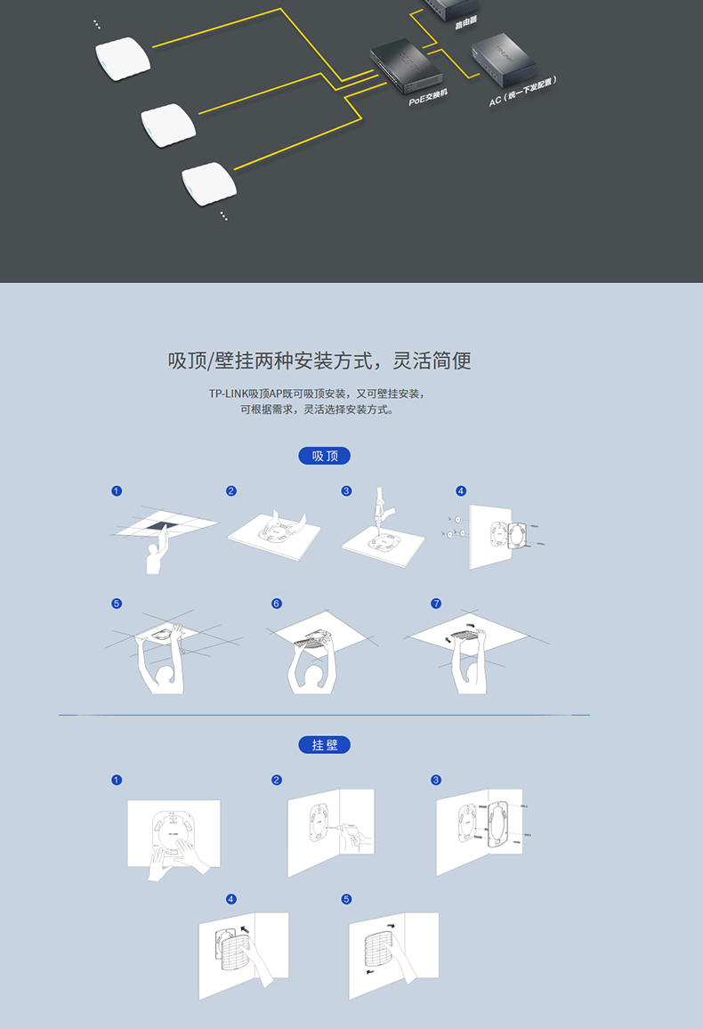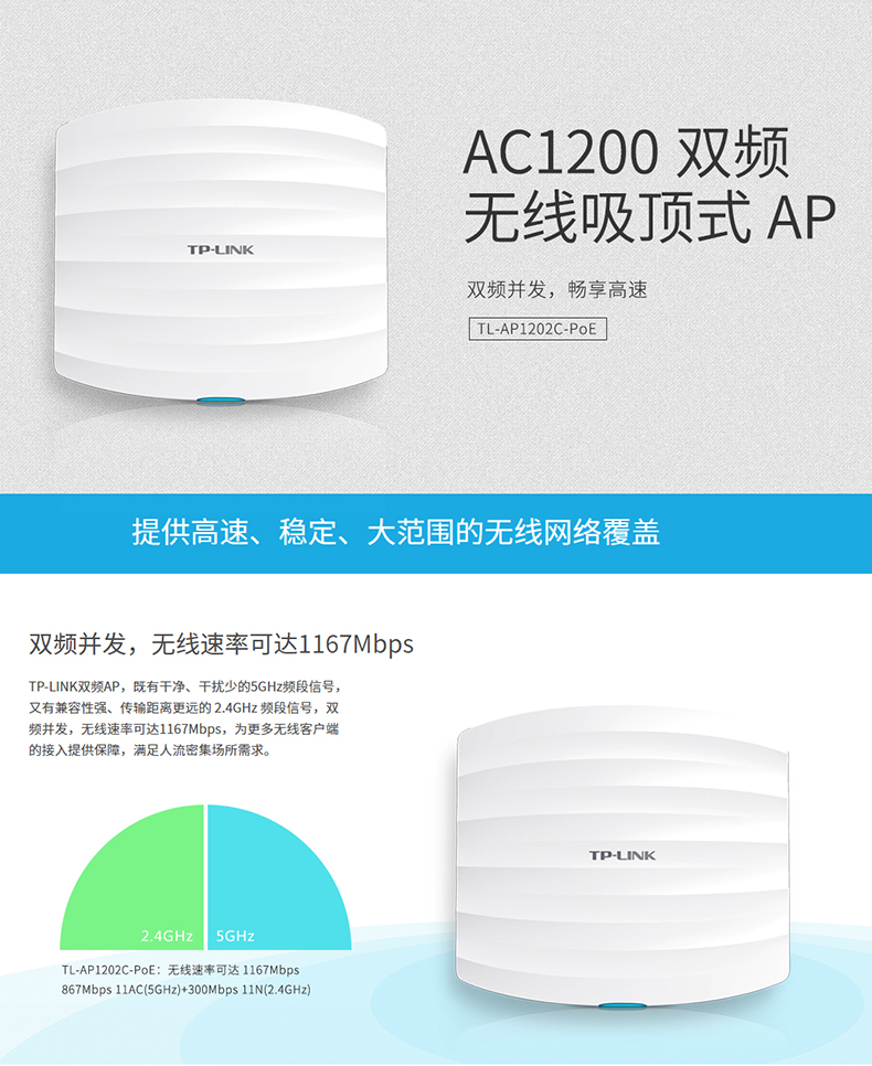 商品名称:TP-LINK 双频1200M无线吸顶式AP企业宾馆WIFI覆盖TL-AP1202C-POE