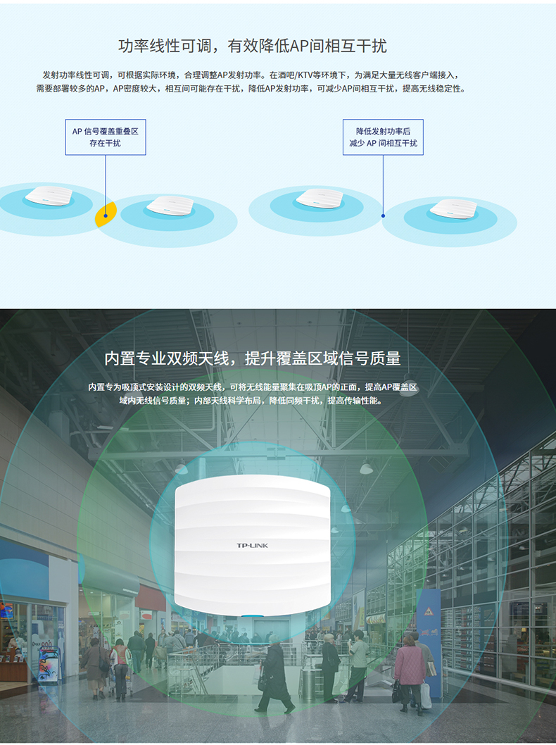 TP-LINK 双频1200M无线吸顶式AP企业宾馆WIFI覆盖TL-AP1202C-POE