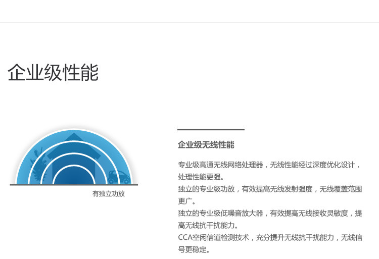 采用11N无线技术,无线传输速率高达450Mbps,可以满足更多的无线客户端接入并为每个客户端提供更高的无线带宽。采用3x3 MIMO架构,配置3根5dBi可拆卸高增益全向天线,信号多路收发,提高信号穿透力,增大无线覆盖范围。