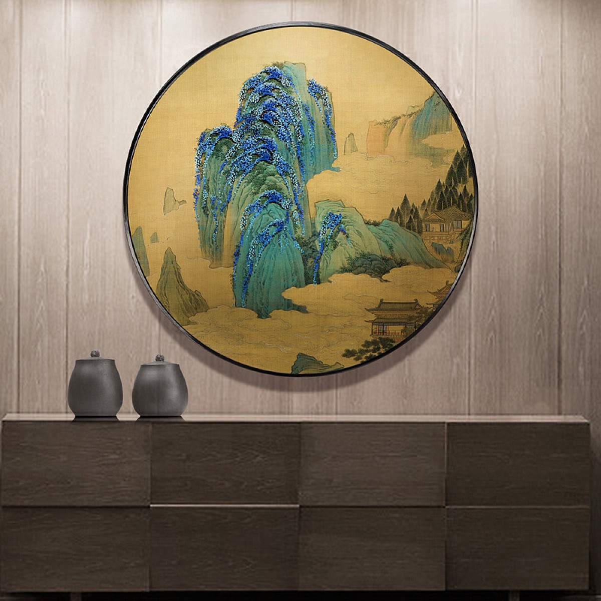 国产 钉子画新中式圆形软装画山水立体装饰画样板房玄关实物画手工挂画