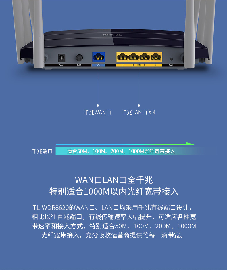 TP-LINK WDR8620双频千兆端口光纤无线路由器2600M穿墙WIFI智能