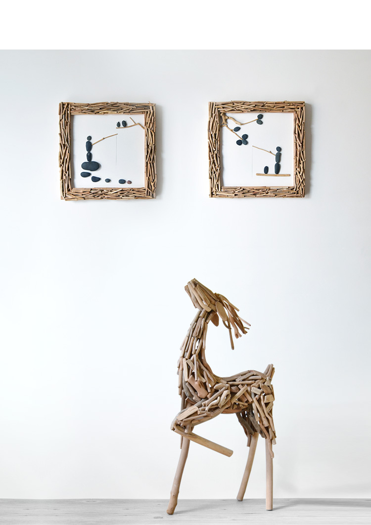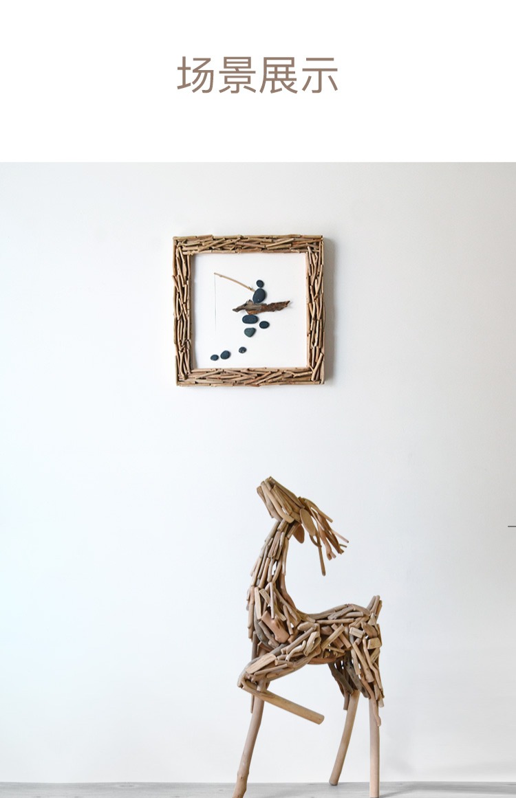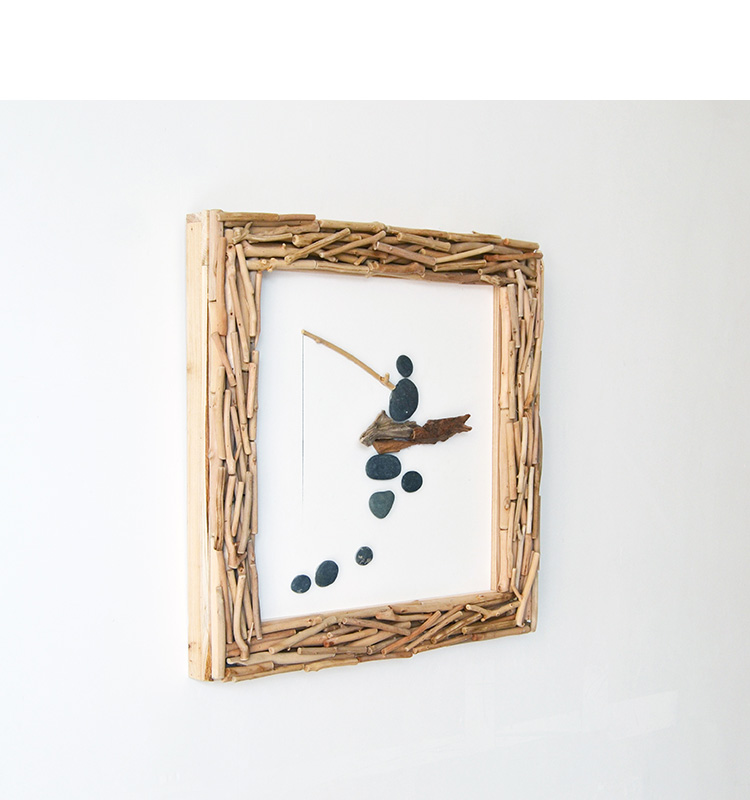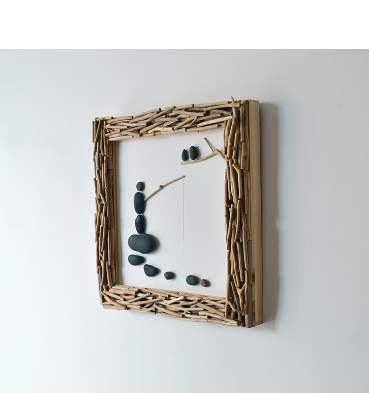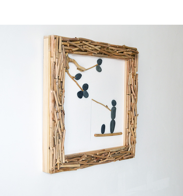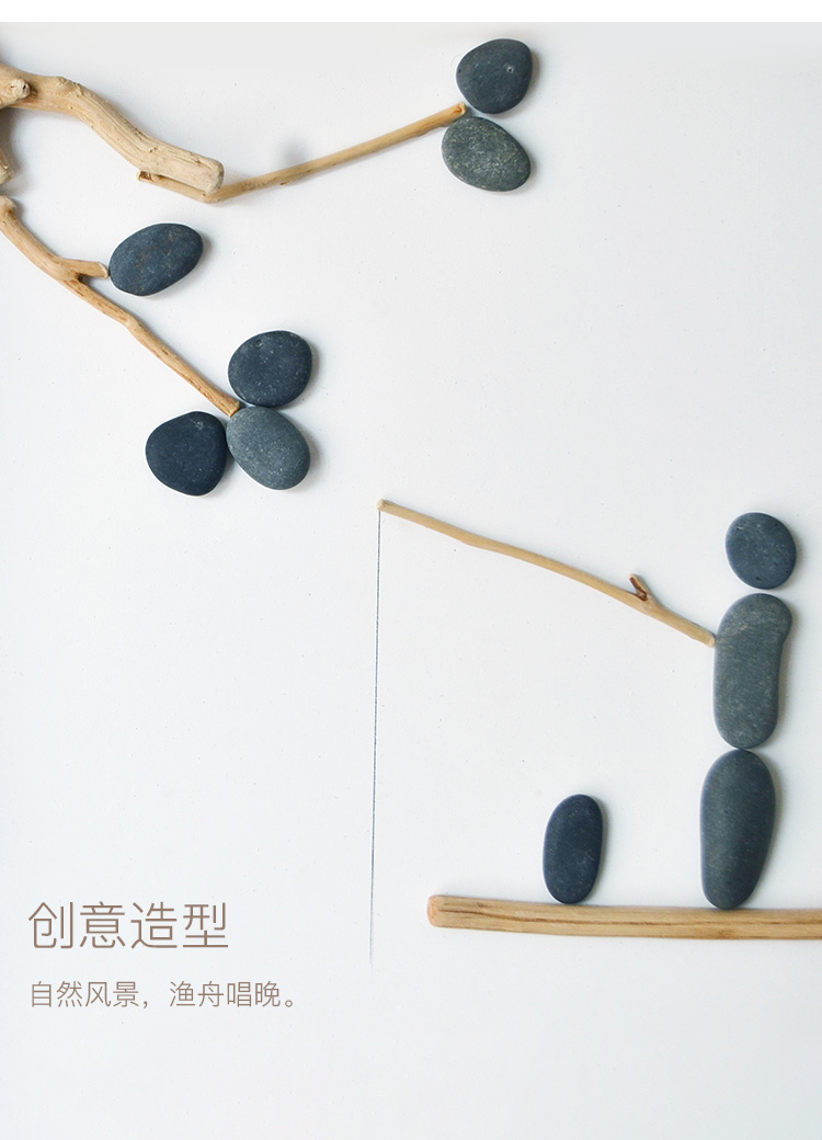 国产 居慢生活 纯手工木制石头画北欧客厅装饰画沙发背景墙挂画三联画