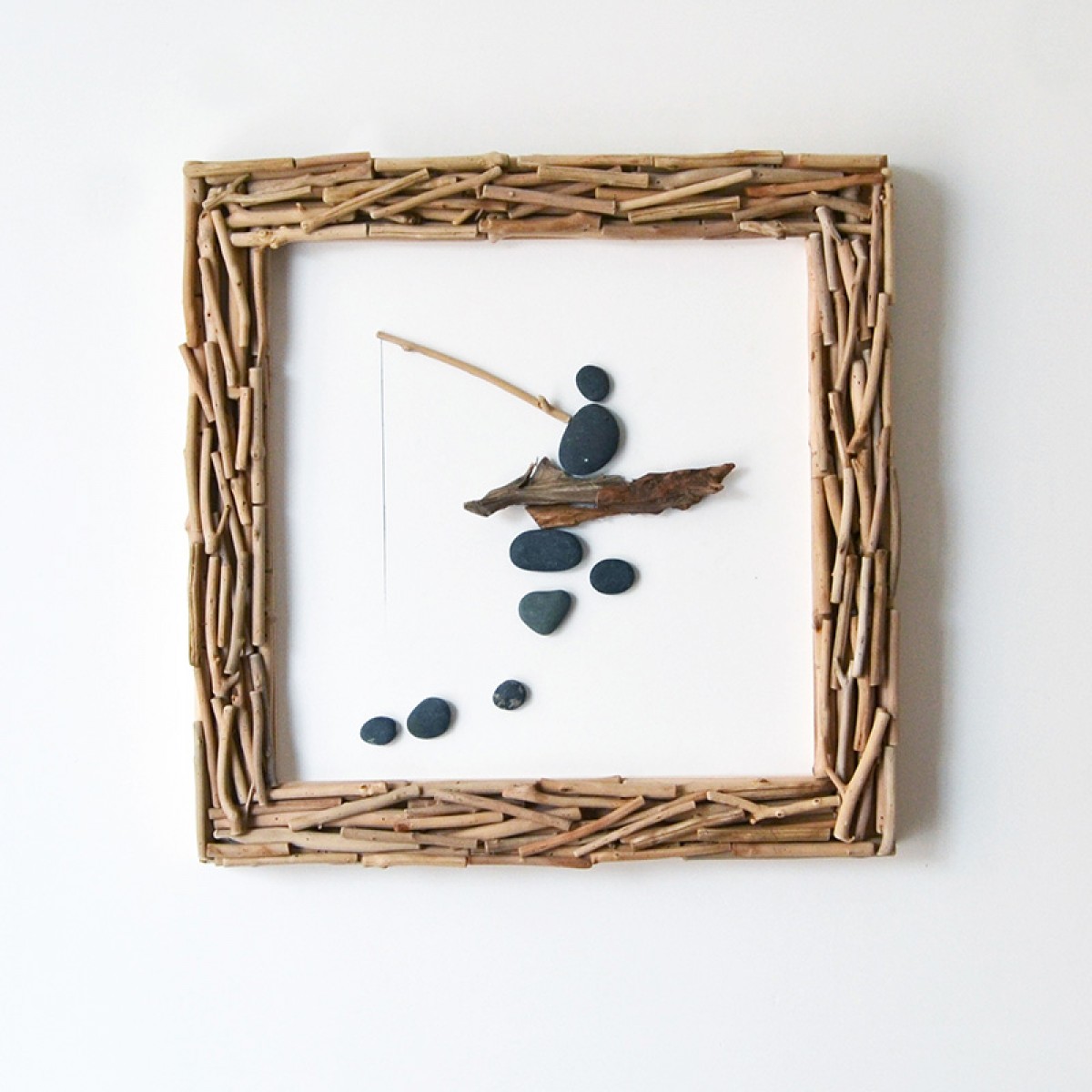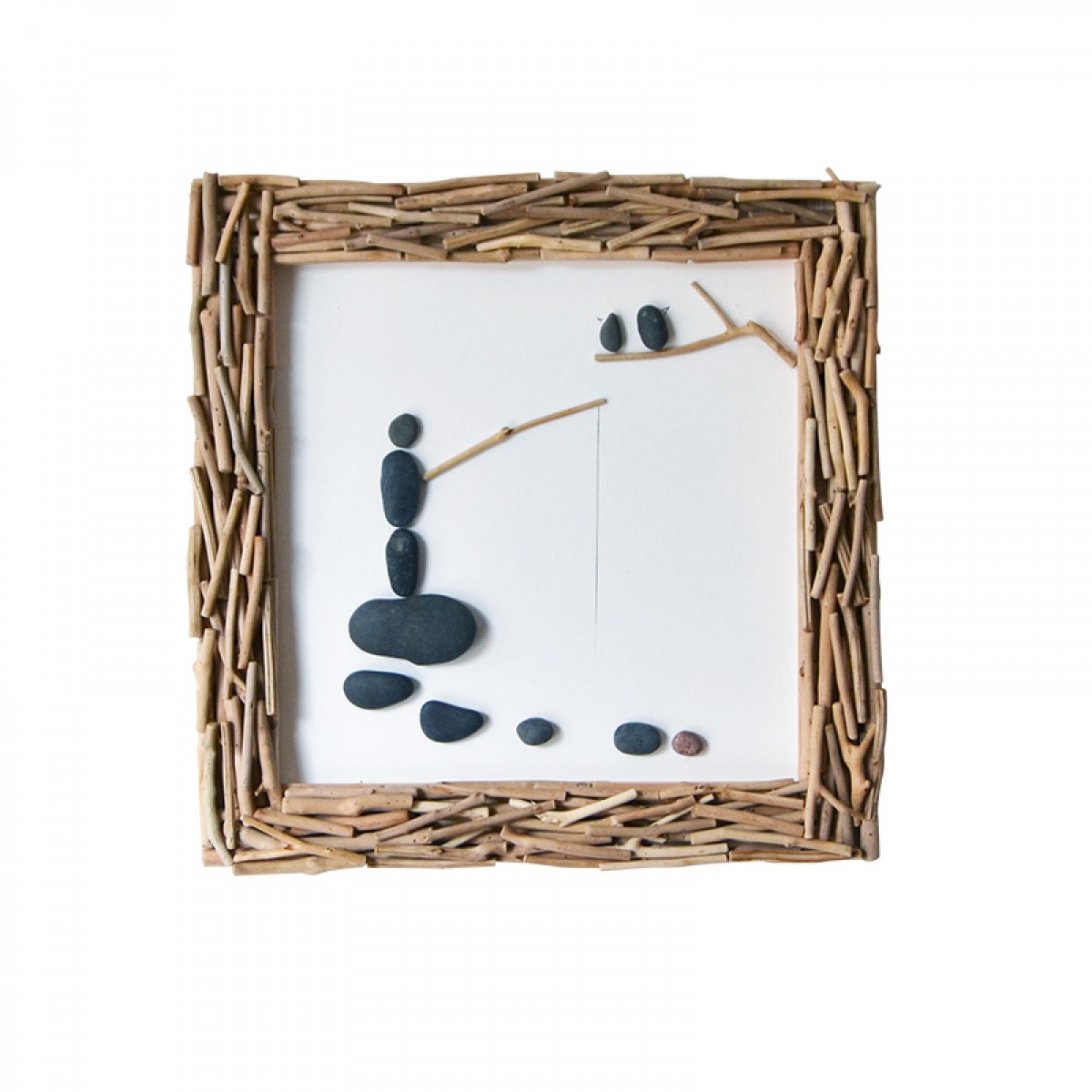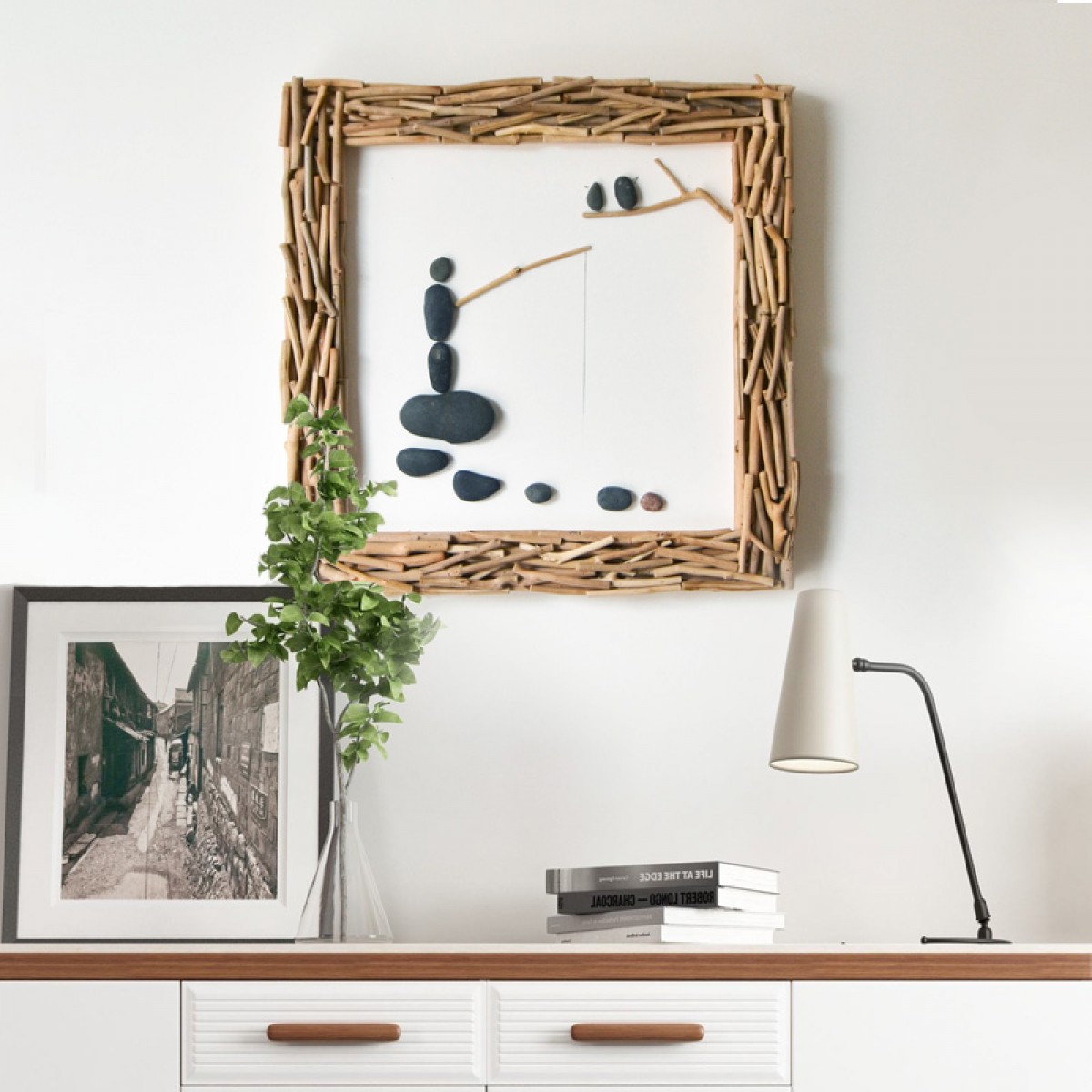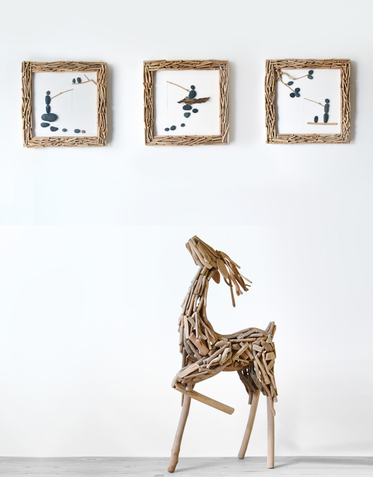 国产 居慢生活 纯手工木制石头画北欧客厅装饰画沙发背景墙挂画三联画
