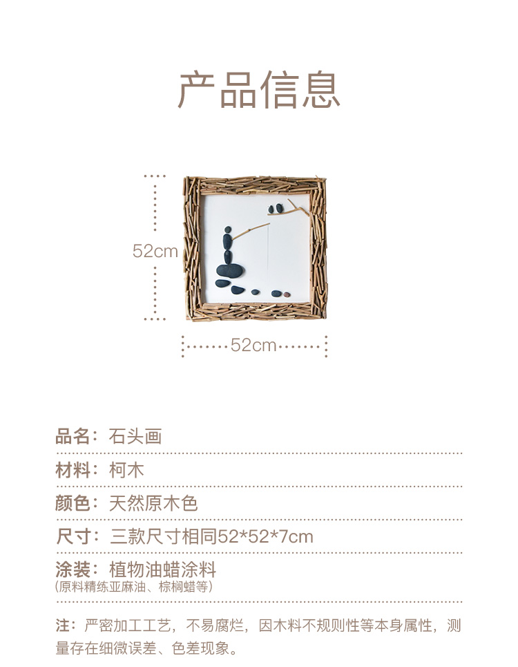商品名称:国产 居慢生活 纯手工木制石头画北欧客厅装饰画沙发背景墙挂画三联画