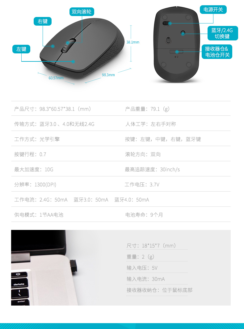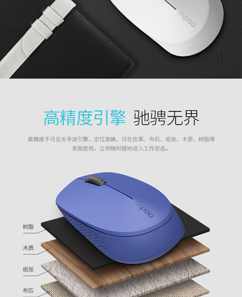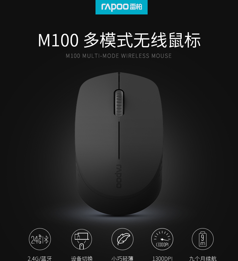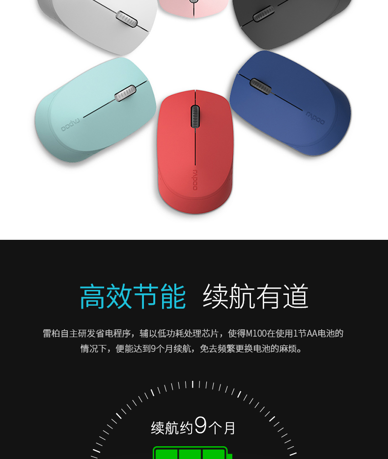 商品名称:雷柏 无线静音鼠标便携台式电脑笔记本办公静音家用无线鼠标 M100