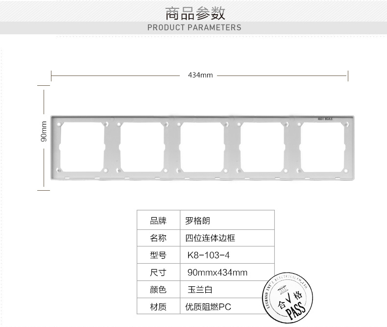 商品名称:罗格朗 5连体开关插座边框 五位连体面板开关边框 匹配仕典白色