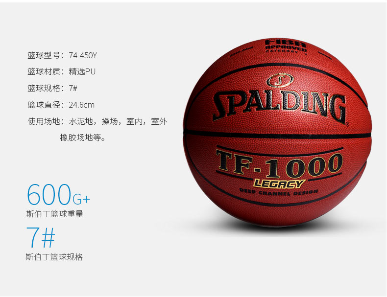 商品名称:斯伯丁 篮球7号PU室内室外水泥地74-450软皮NBA篮球lanqiu蓝球