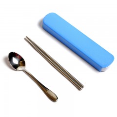 宜洁 不锈钢筷子勺子便携餐具实心成人学生户外旅行套装两件套