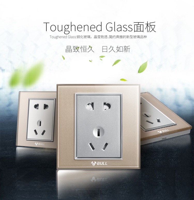 公牛 开关插座 墙壁开关插座面板 五孔电源插座5孔插座G22香槟金