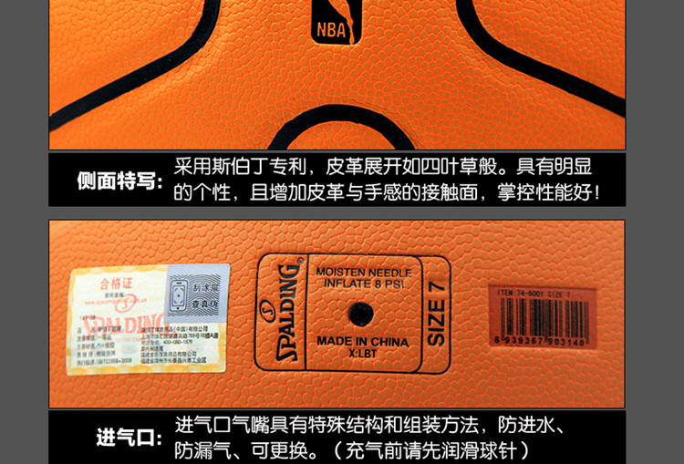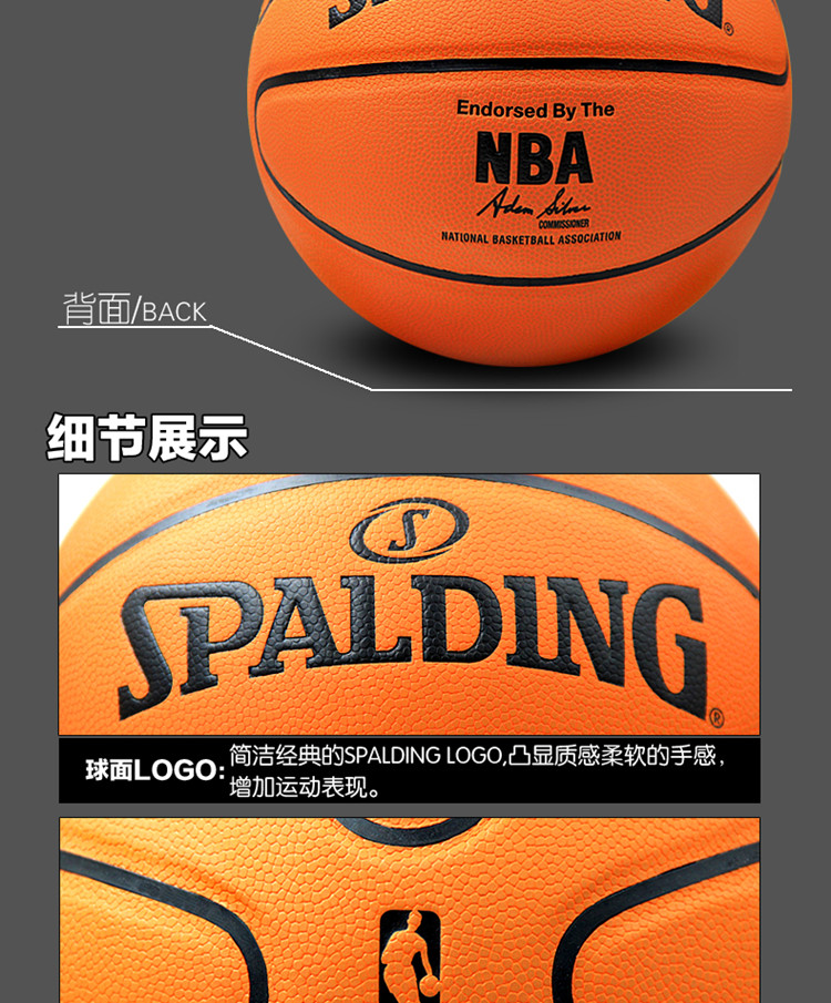 商品名称:斯伯丁 PU篮球耐磨学生NBA室外软皮7号lanqiu水泥地蓝球74-600